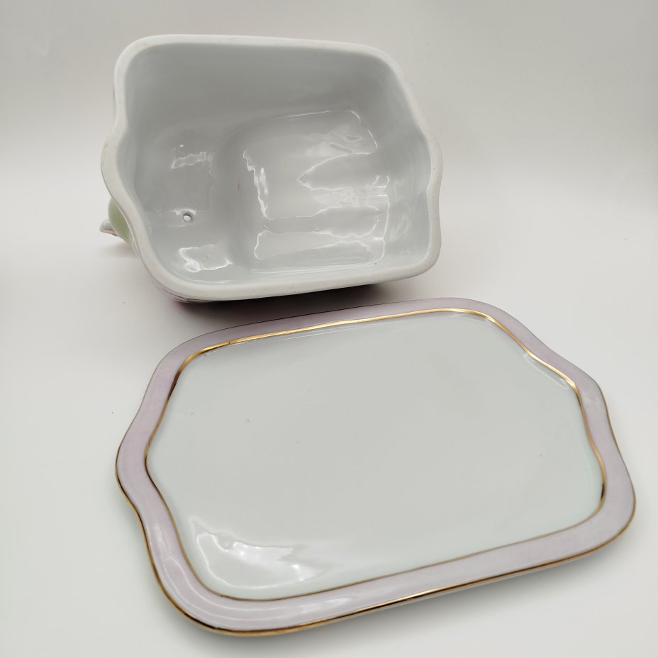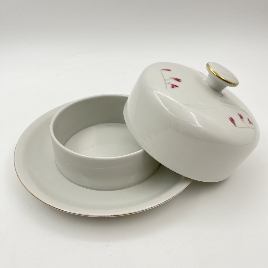 Маслёнка с декором в виде роз, фарфор, деколь, золочение, Freiberger Porzellan, ГДР, 1960-1990 гг.