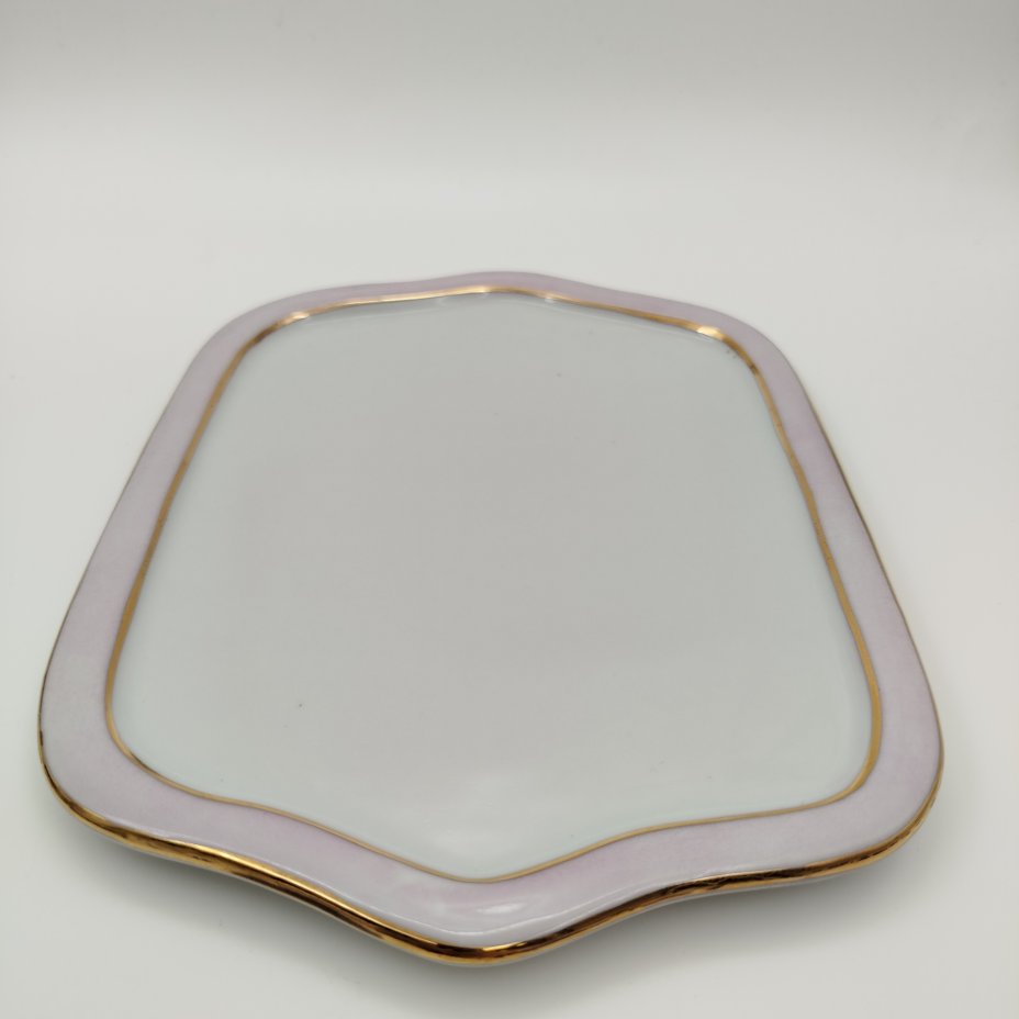 Блюдо для сервировки сыра (сырница) с цветочным декором и фигурным хватком, фарфор, роспись, золочение, Западная Европа, 1950-1980 гг.