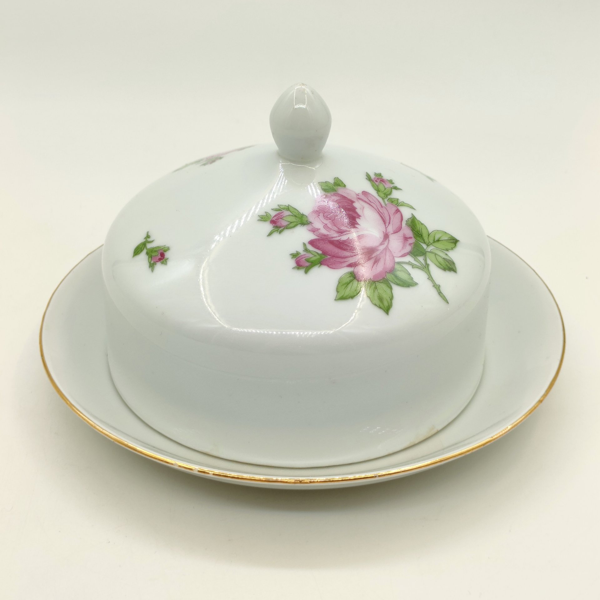 Масленка из сервиза "Роза", фарфор, деколь, золочение, Freiberg Porzellan, Германия, 1957-1972 гг.