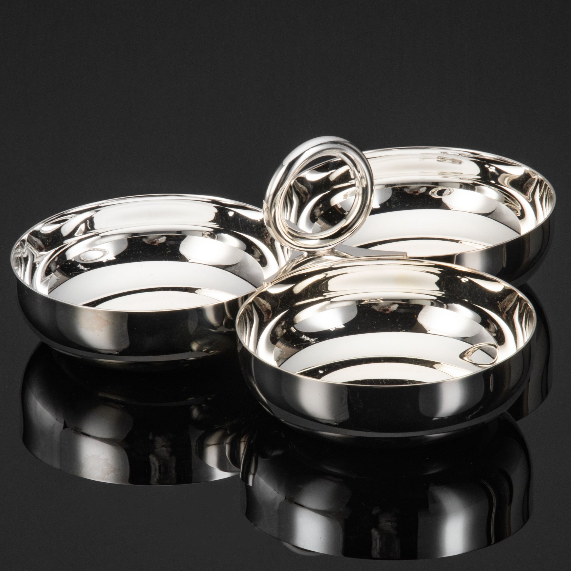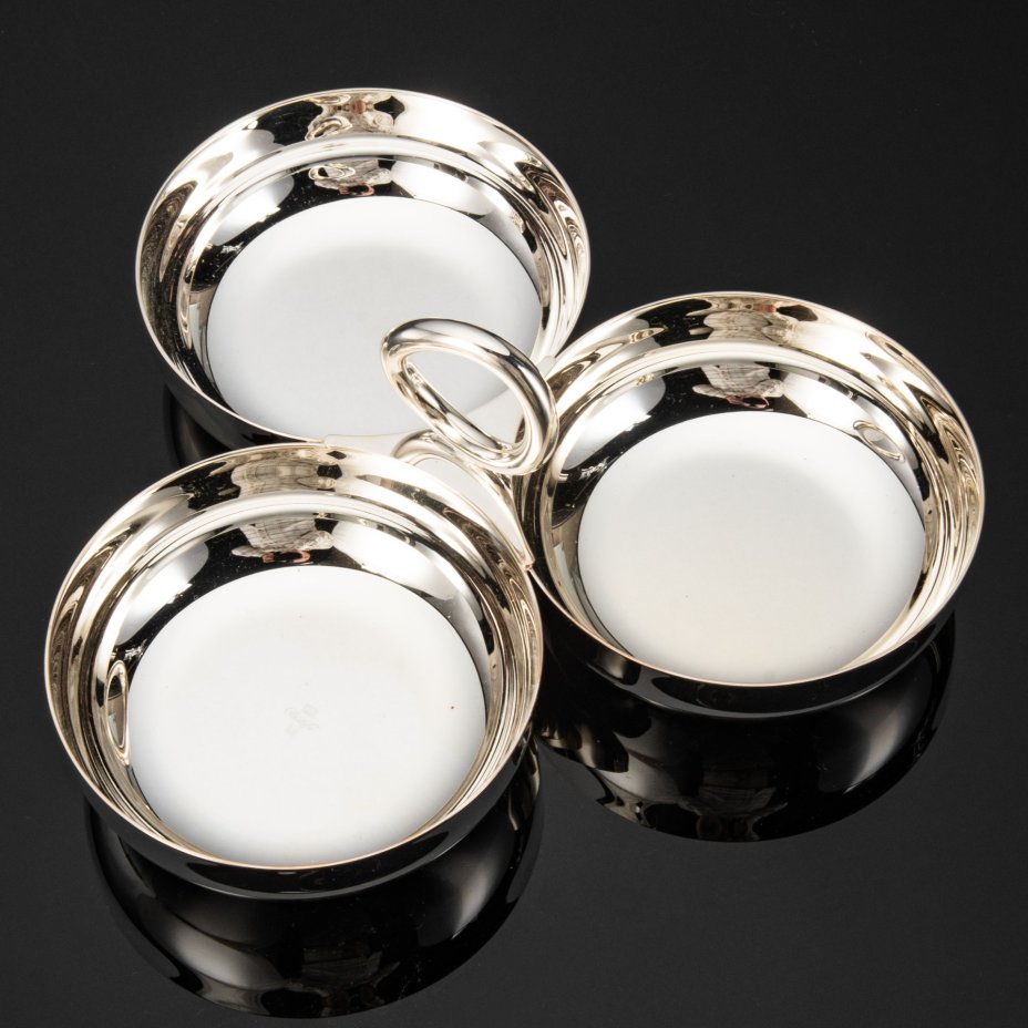 Менажница трёхсекционная на подставке, стекло, матирование, сплав металлов, Западная Европа, 1990-2000 гг.