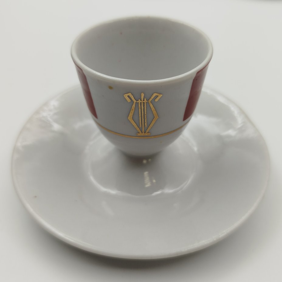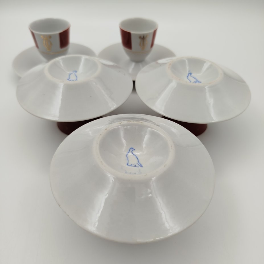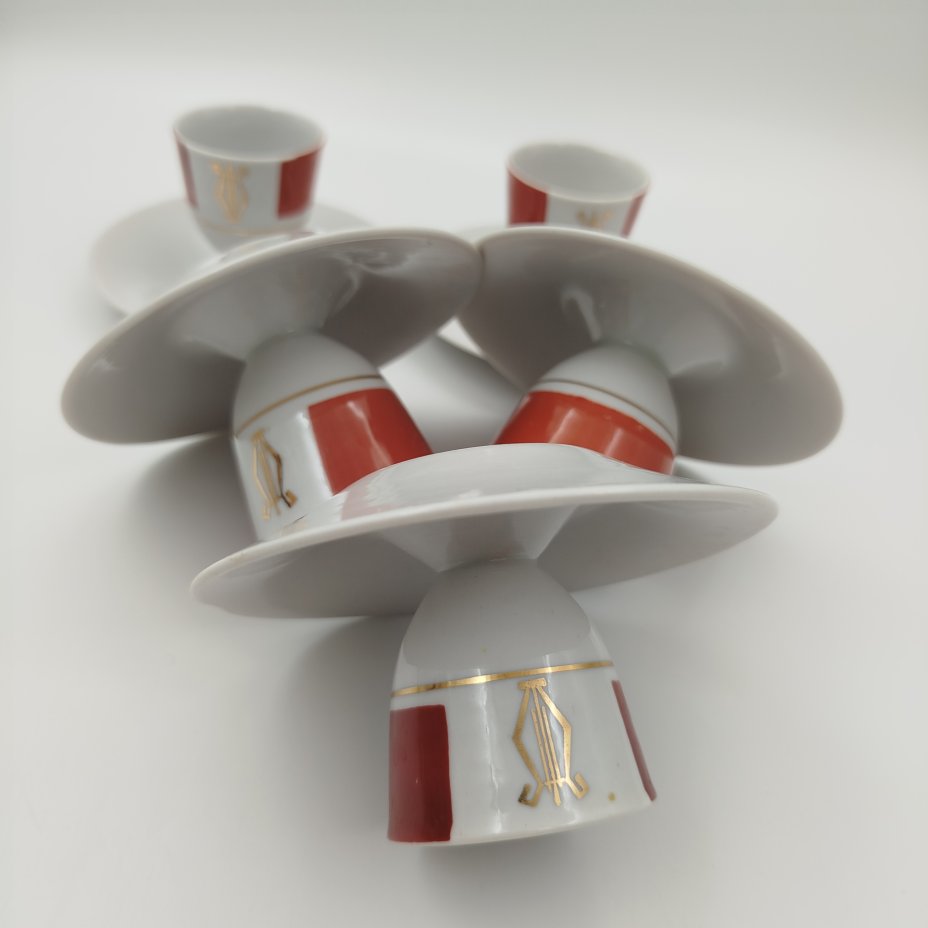 Набор пашотниц с лаконичным декором на 5 персон, фарфор, крытье, золочение, Дулевский фарфоровый завод (Дулёво), СССР, 1964-1968 гг.