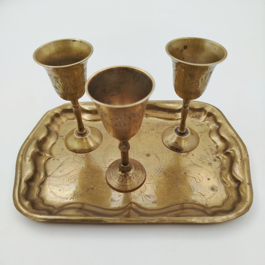 Купить Небольшой поднос/подставка в металлической оправе, украшенный изображениями всадников, керамика, Металл, дерево, Европа, 1920-1950 гг.
