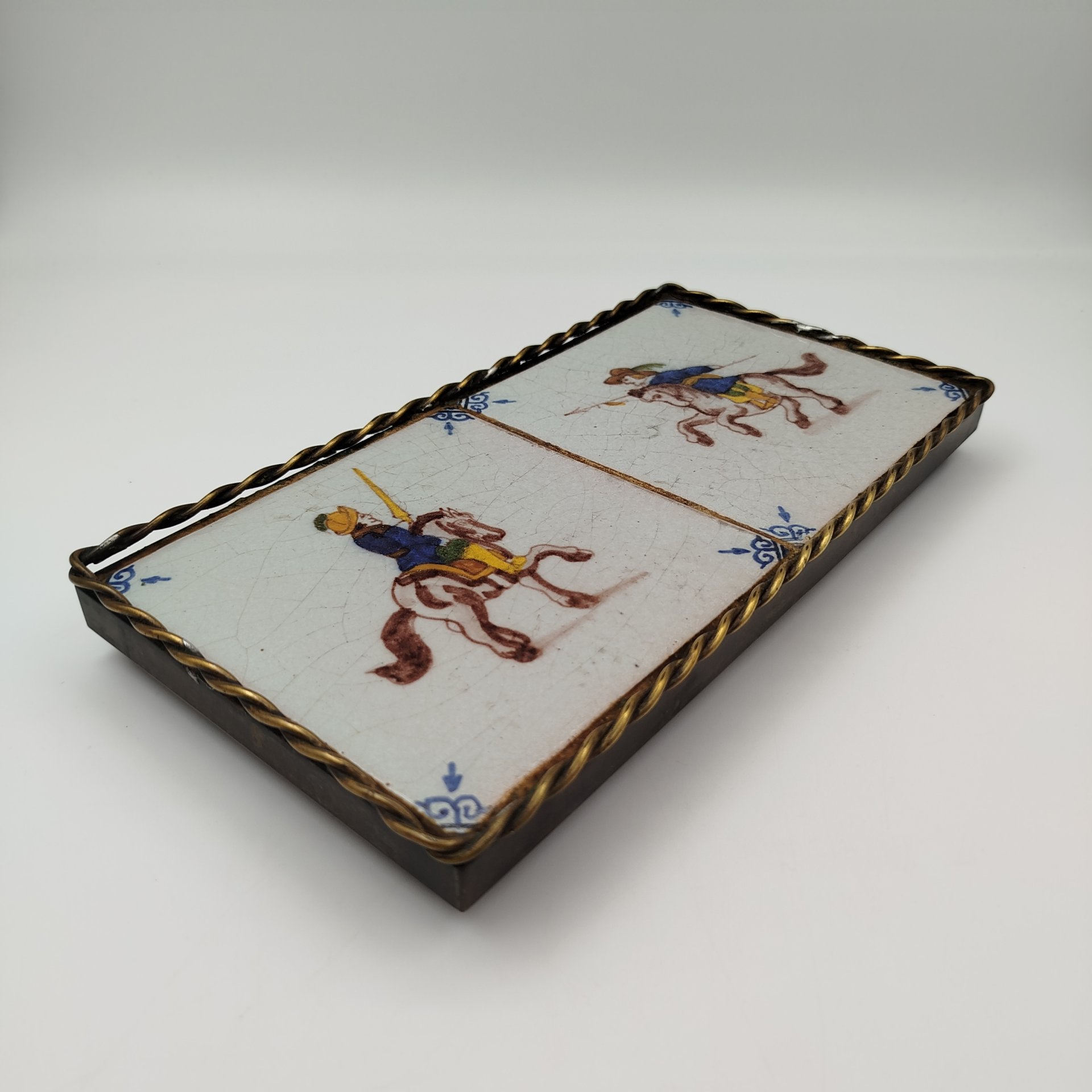 Поднос овальной формы, украшенный цветами прованса, фаянс, деколь, сплав металлов, Западная Европа, 1920-1940 гг.