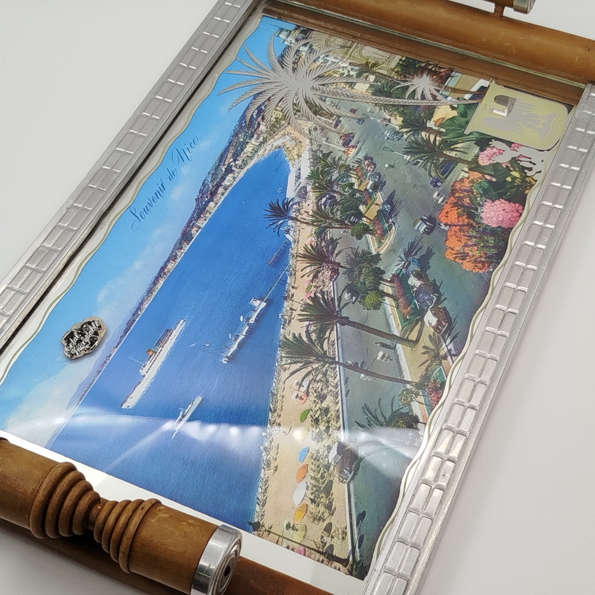 Небольшой поднос/подставка в металлической оправе, украшенный изображениями всадников, керамика, Металл, дерево, Европа, 1920-1950 гг.