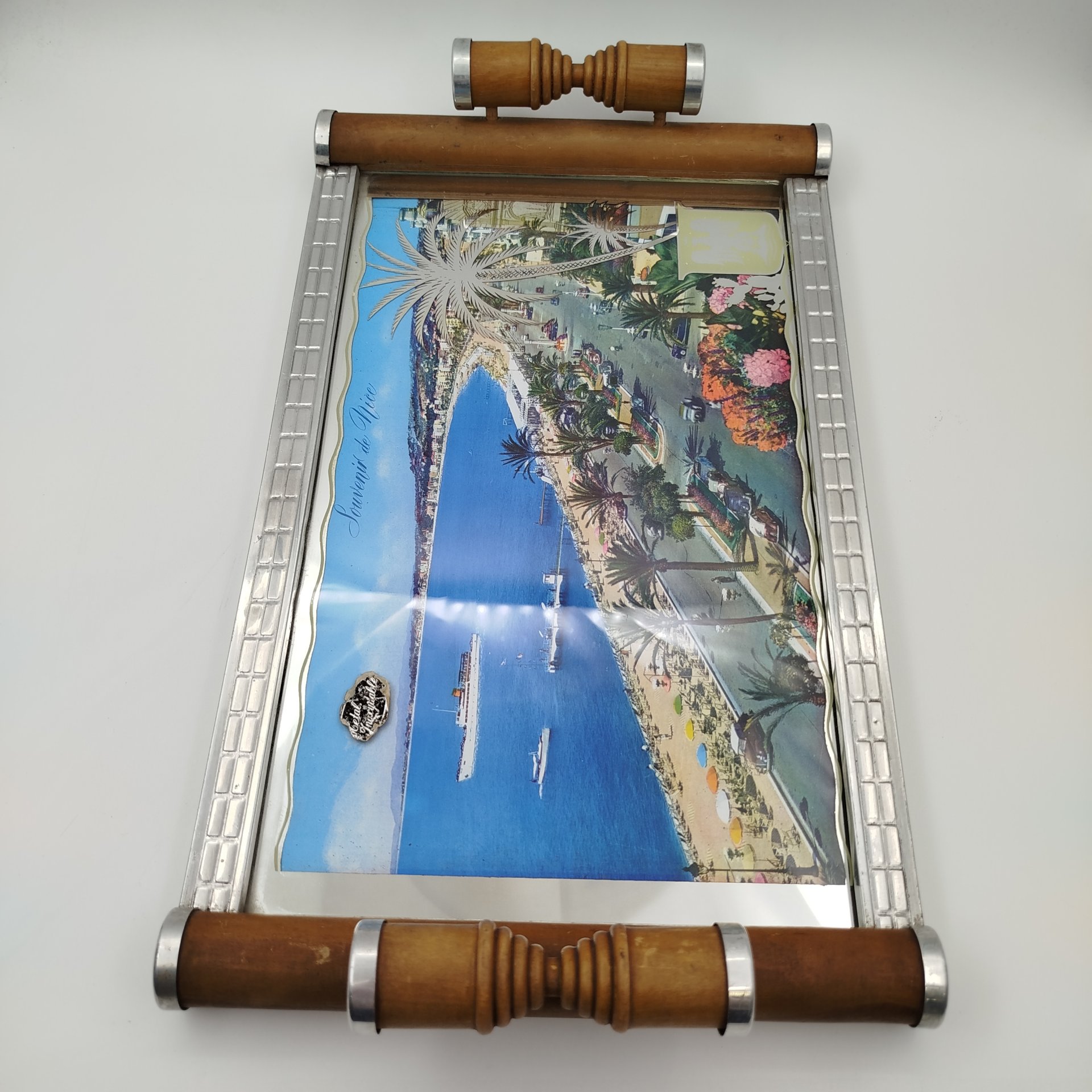 Поднос овальной формы, украшенный цветами прованса, фаянс, деколь, сплав металлов, Западная Европа, 1920-1940 гг.