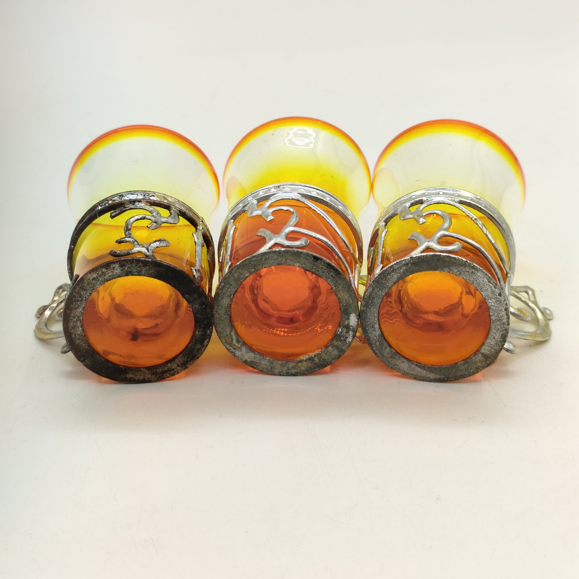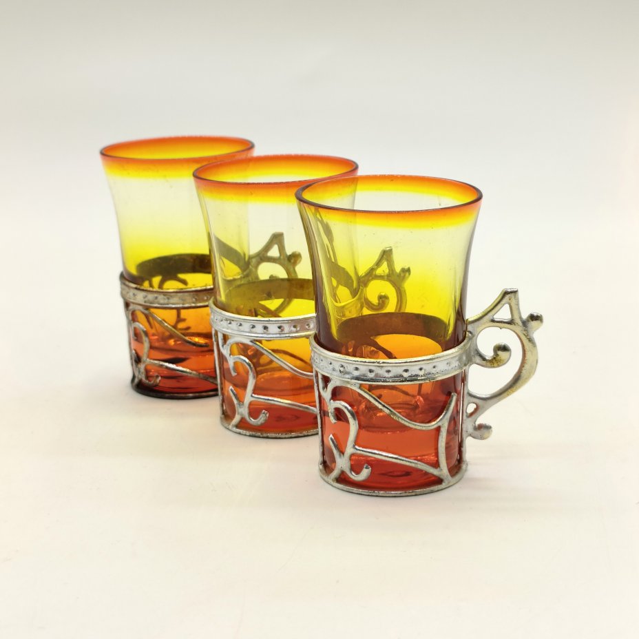 Набор из 3-х стопок в подстаканниках, цветное стекло, сплав металлов, СССР, 1970-1990 гг.