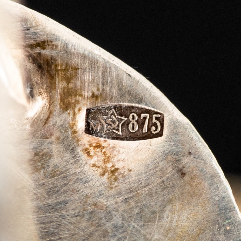 Подстаканник, украшенный растительным декором, медь, серебрение, Московский платиновый завод «Платиноприбор» (МПЗ), СССР, 1920-1930 гг.