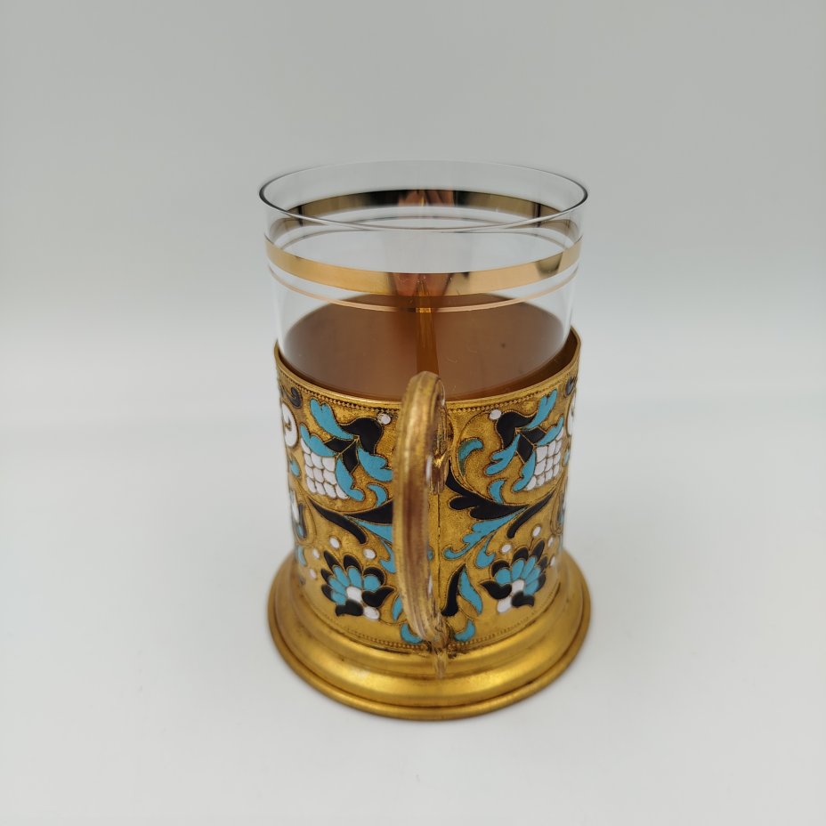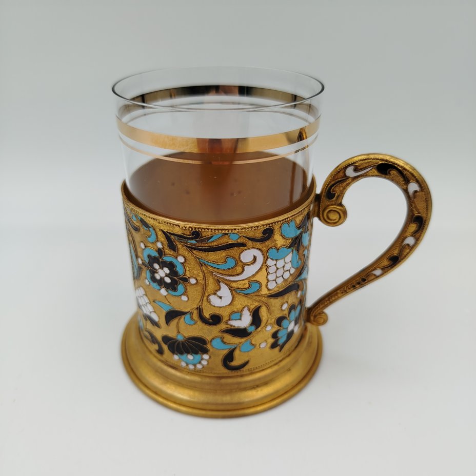Подстаканник с эмалевым узором растительного характера, латунь, эмаль, Ленинградская ювелирная фабрика, СССР, 1953-1960 гг.
