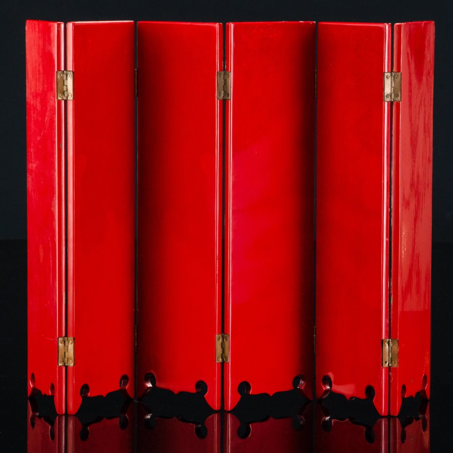Ширма настольная 6-ти секционная, украшенная изображением фазанов и цветов, дерево, металл, резьба, роспись, Азия, 1970-1990 гг.