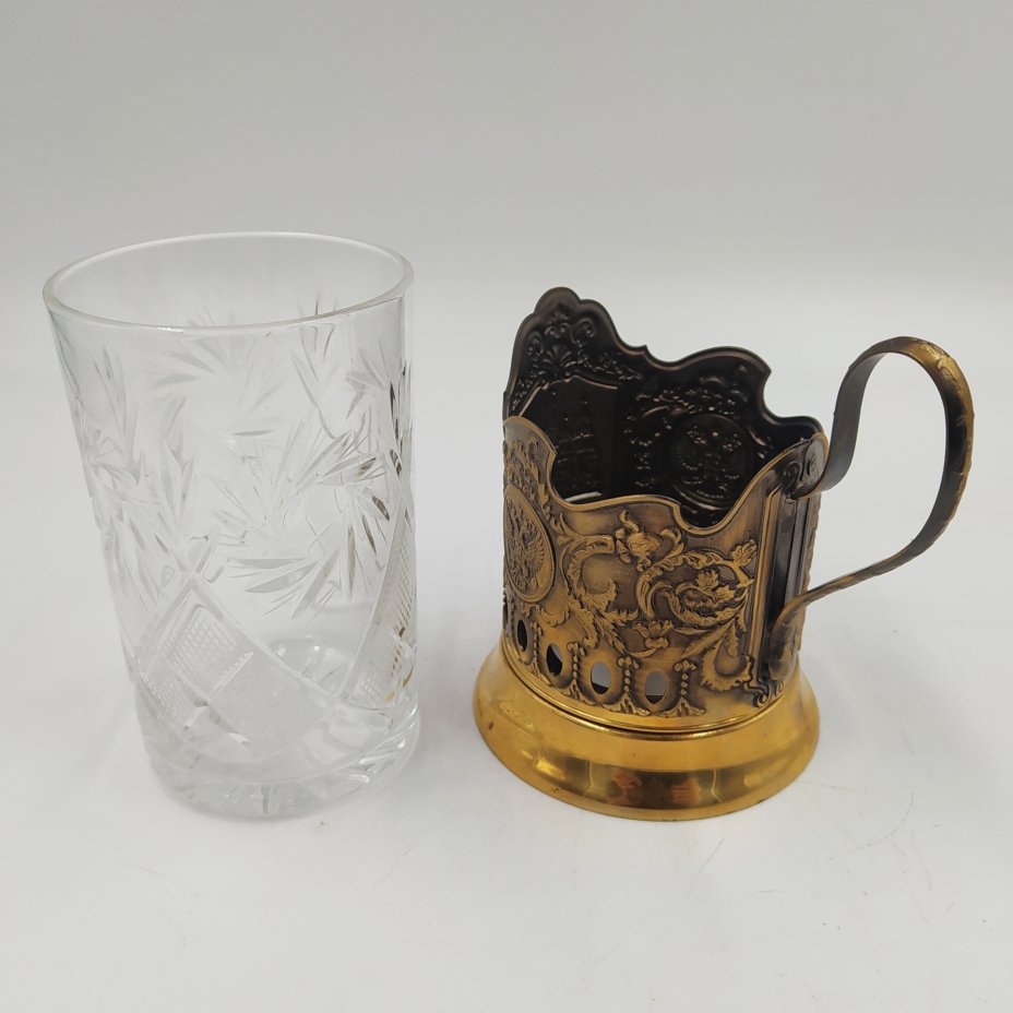 Набор из двух подстаканников со стаканами, стекло, металл, СССР, 1970-1990 гг.