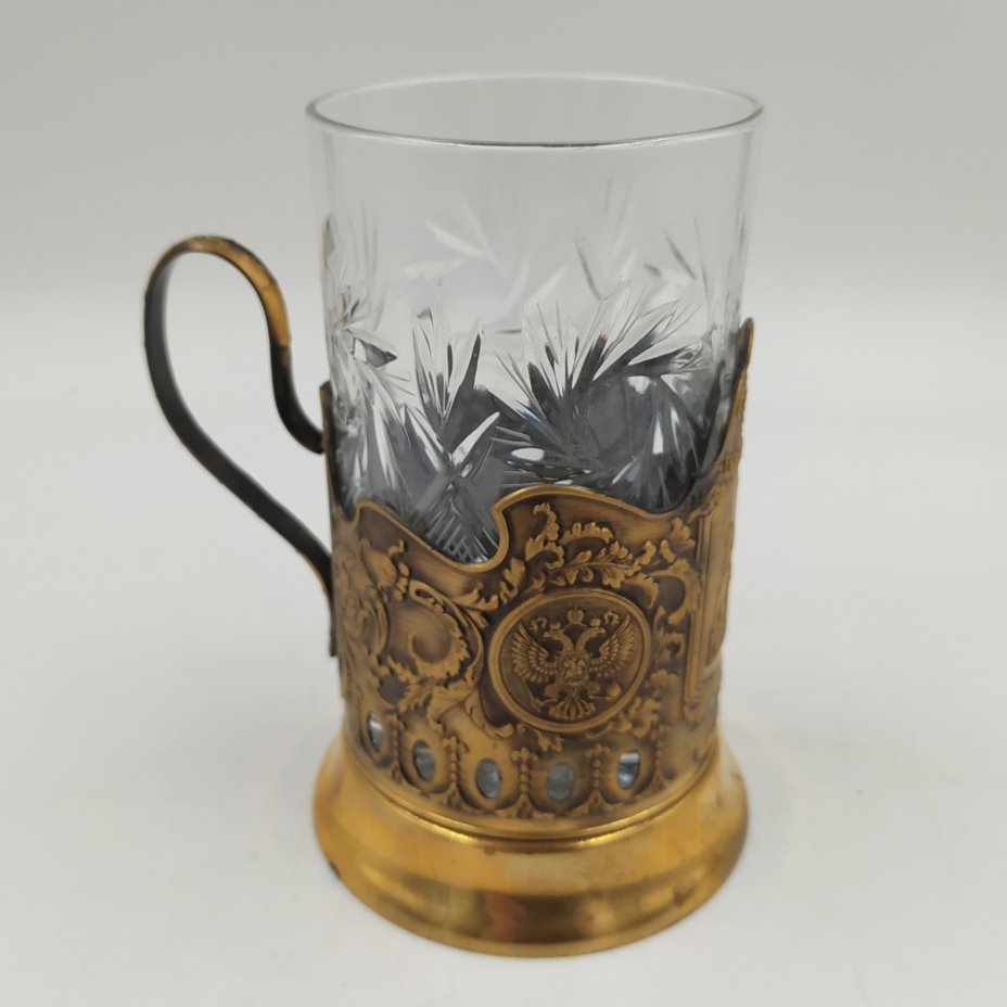 Подстаканник "Россия" в комплекте со стаканом, металл, стекло, Российская Федерация, 2000-2020 гг.