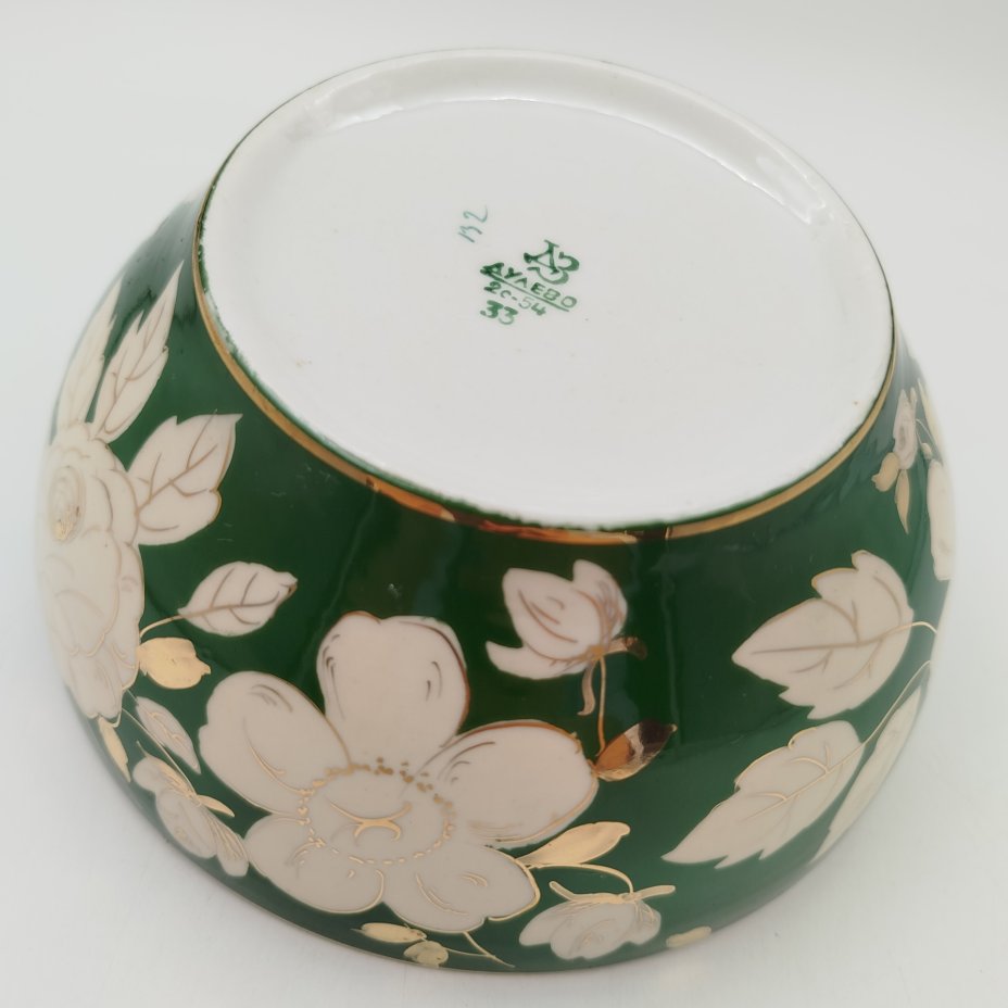 Капельник/конфетница с декором из роз, фарфор, деколь, золочение, Дулевский фарфоровый завод (Дулёво), СССР, 1956 г.