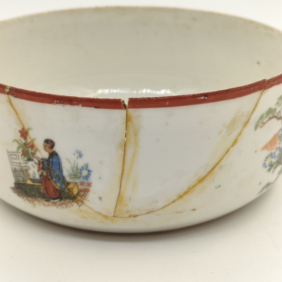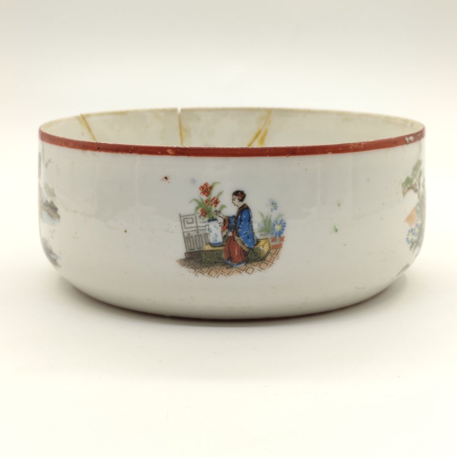 Полоскательница (капельник) в стиле шинуазри, фарфор, деколь, обводка, Первомайский фарфоровый завод (Песочное), СССР, 1924-1930 гг.