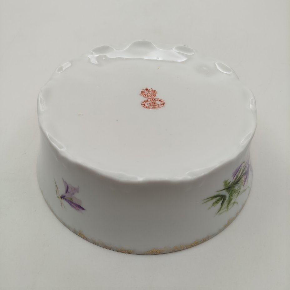 Капельник (полоскательница), украшенный изображением колокольчиков, фарфор, деколь с подрисовкой, золочение, Фарфоровая фабрика Гарднера, Российская империя, 1880-1910 гг.