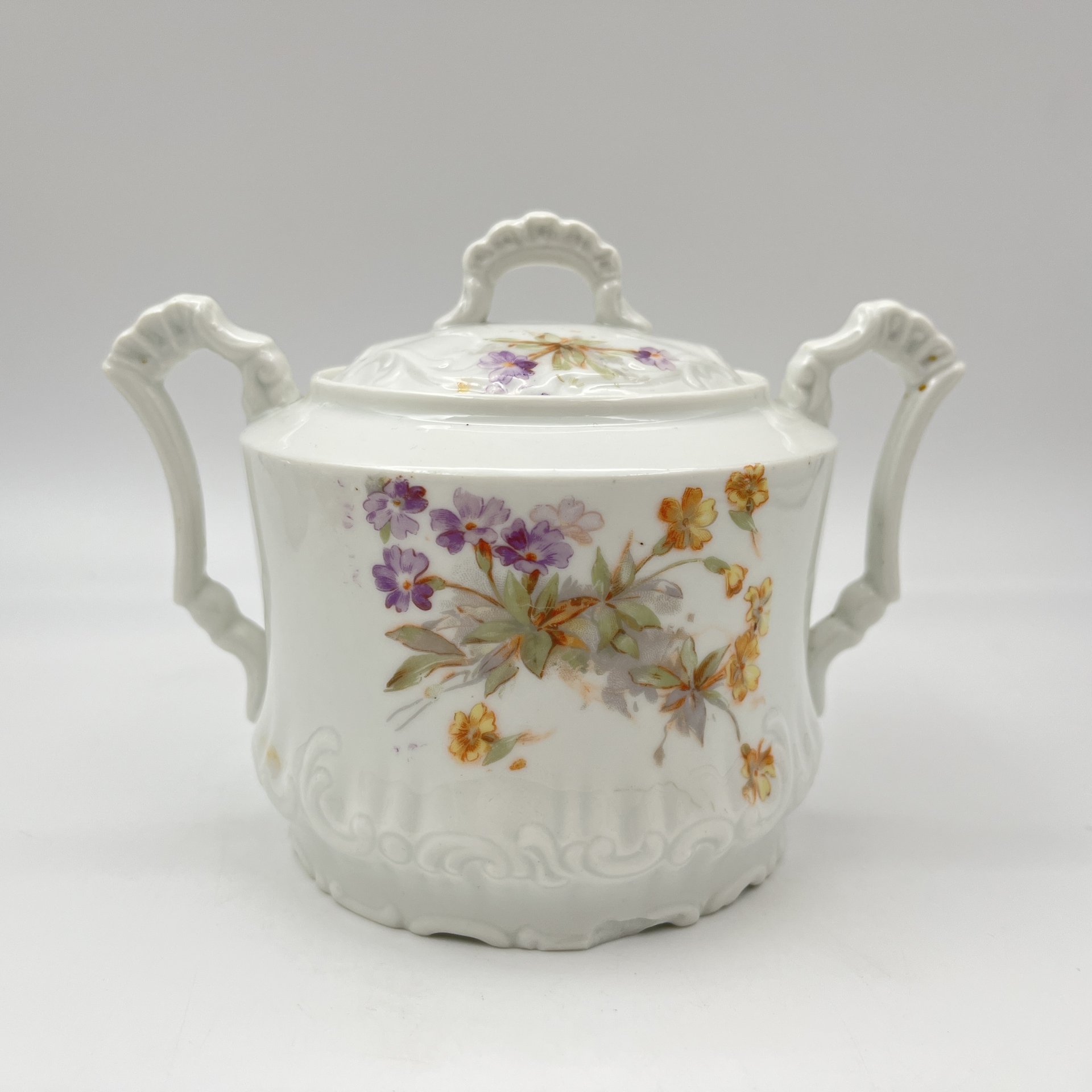 Сахарница, украшенная цветочным декором, фарфор, деколь, Западная Европа, 1890-1918 гг.