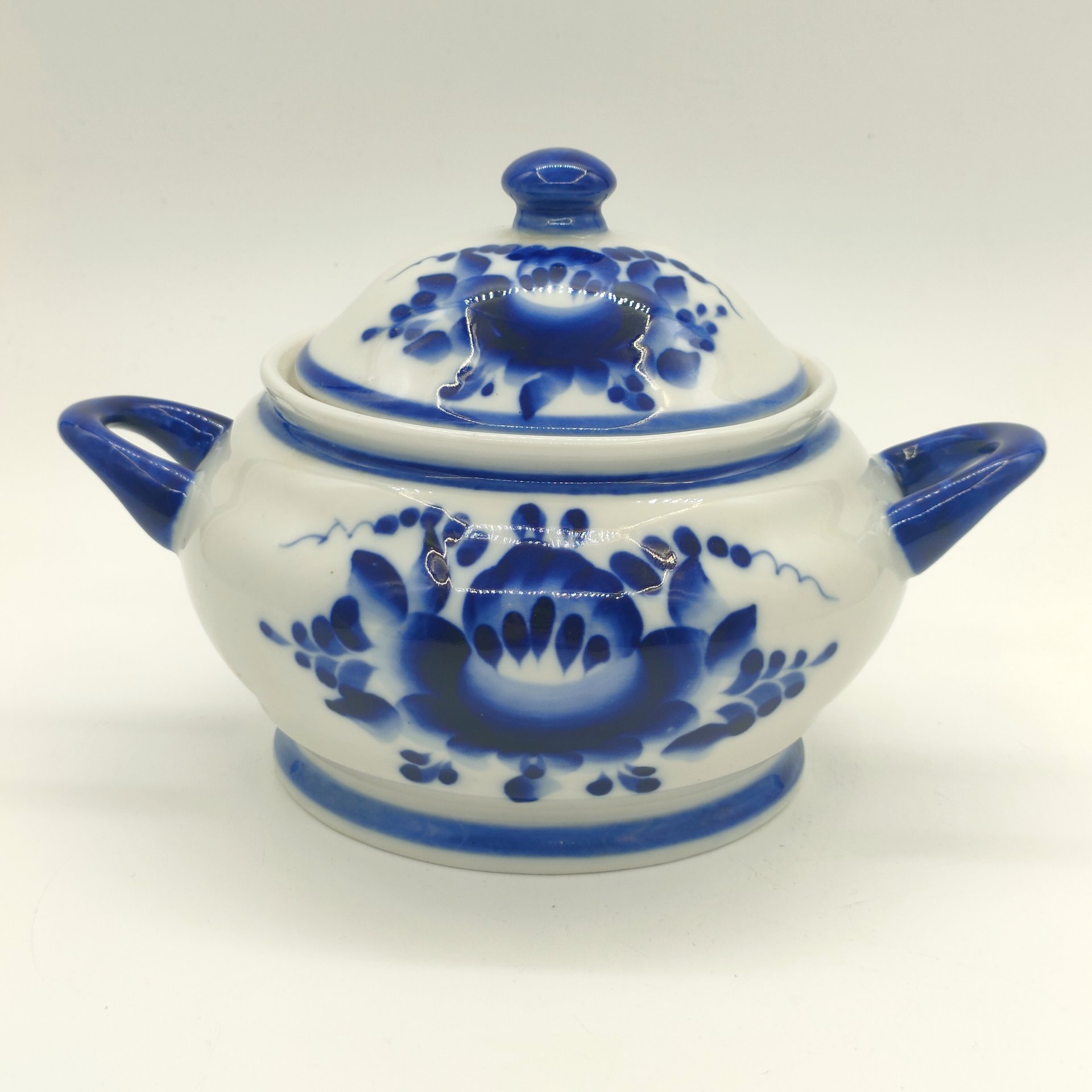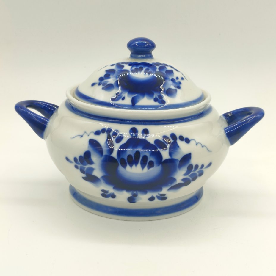 Сахарница с цветочным декором, Гжель, фарфор, роспись, Россия, 1990-2010 гг.