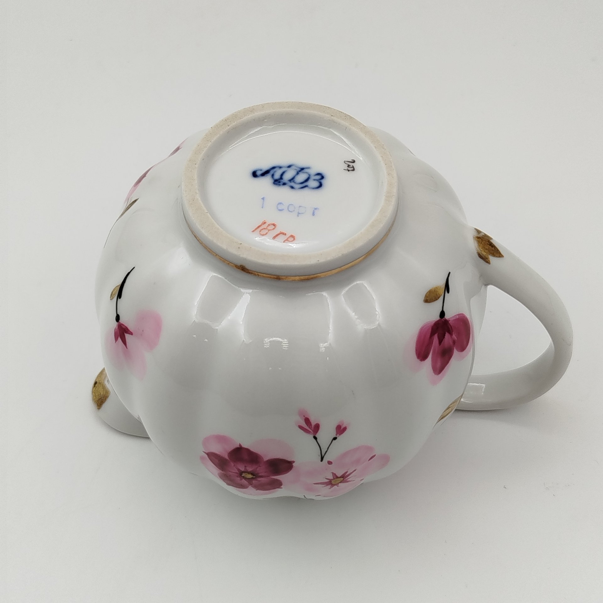 Молочник "Майский ситчик", художник Беспалова-Михалева Т.Н., фарфор, роспись, золочение, Ленинградский фарфоровый завод (ЛФЗ), СССР, 1960-1970 гг.