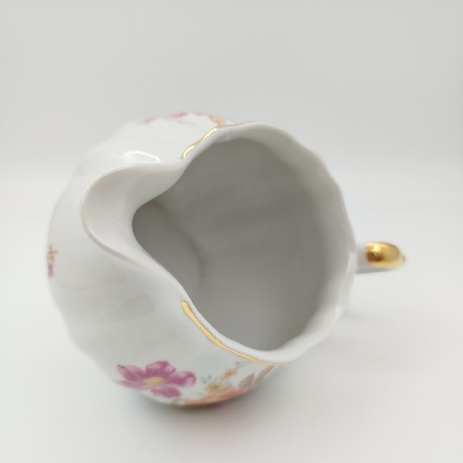 Молочник "Майский ситчик", художник Беспалова-Михалева Т.Н., фарфор, роспись, золочение, Ленинградский фарфоровый завод (ЛФЗ), СССР, 1960-1970 гг.
