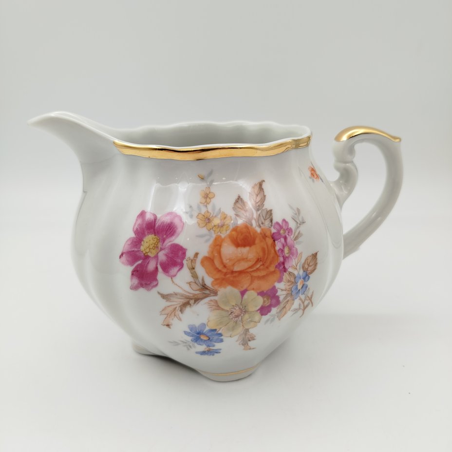 Молочник с цветочным декором, фарфор, деколь, золочение, Graf Von Henneberg Porzellan, 1777 Jlmenau, ГДР, 1977-1990 гг.