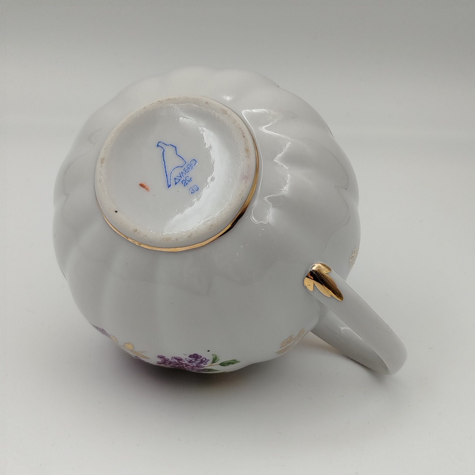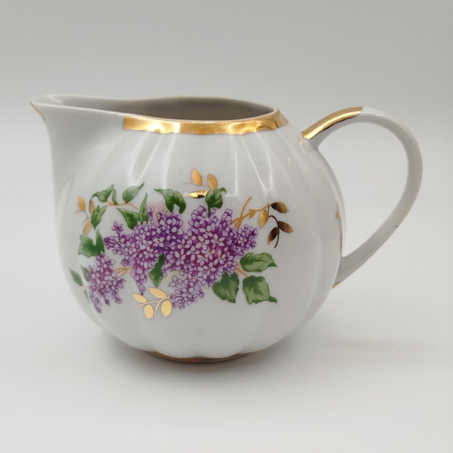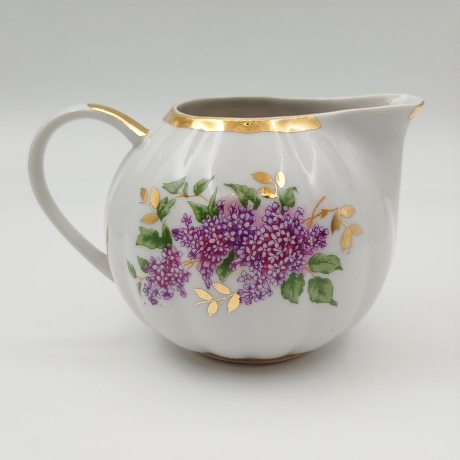 Молочник "Майский ситчик", художник Беспалова-Михалева Т.Н., фарфор, роспись, золочение, Ленинградский фарфоровый завод (ЛФЗ), СССР, 1960-1970 гг.