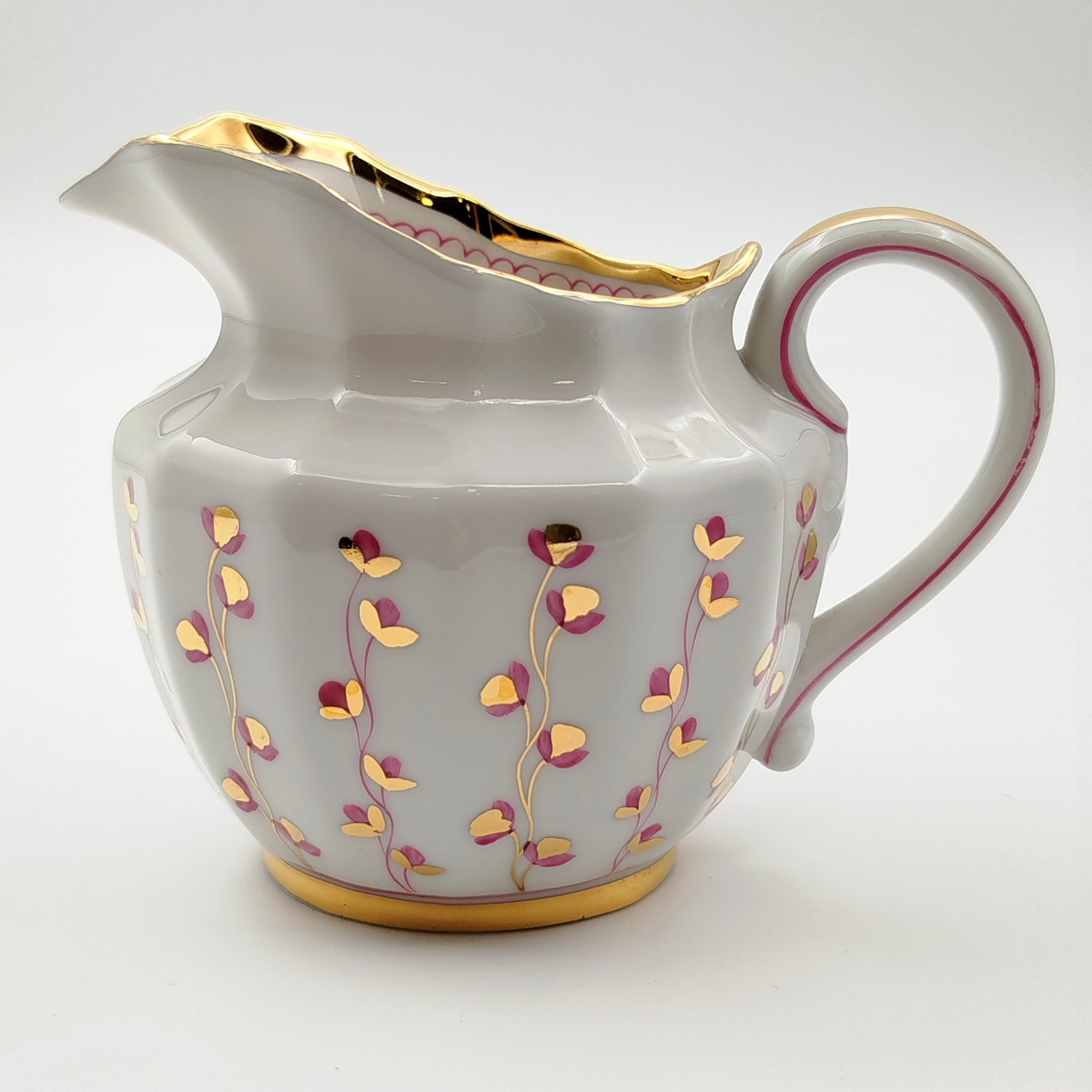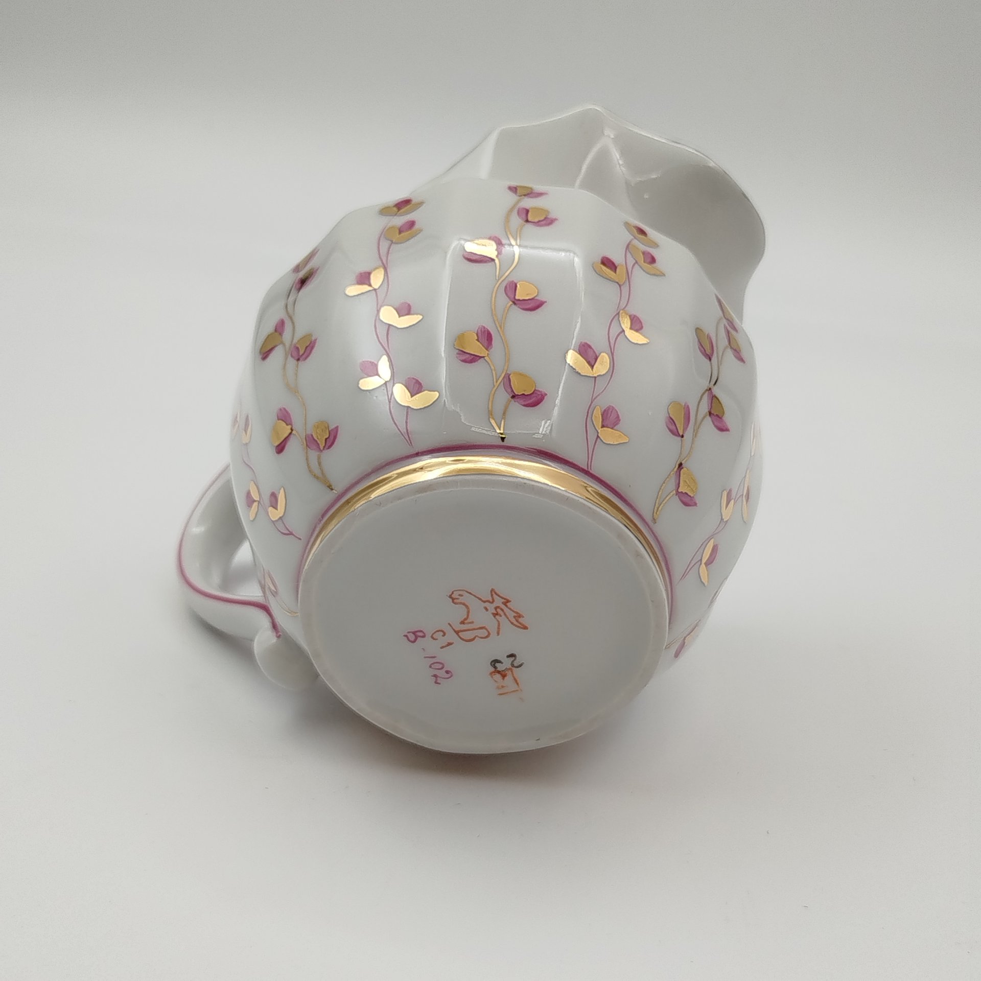 Молочник "Майский ситчик", художник Беспалова-Михалева Т.Н., фарфор, роспись, золочение, Ленинградский фарфоровый завод (ЛФЗ), СССР, 1960-1970 гг.