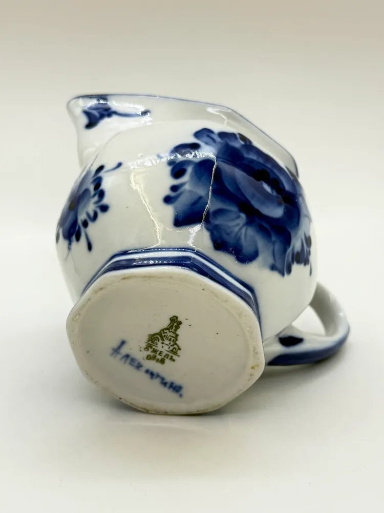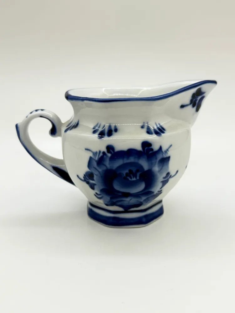 Молочник (сливочник) с цветочным декором, Гжель, фарфор, роспись, Россия, 2000-2015 гг.
