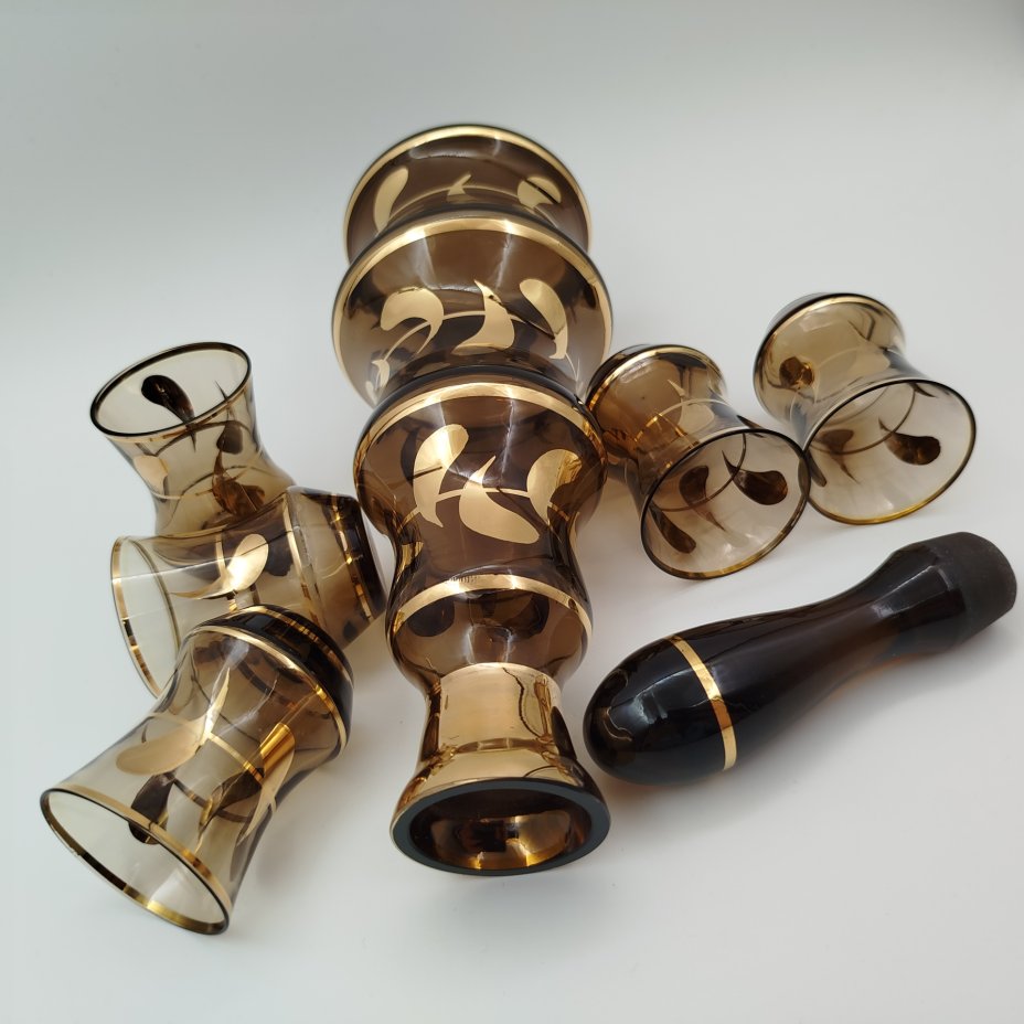 Набор для крепких напитков (штоф, 5 стопок), цветное стекло, золочение, Чехословакия, 1970-1980 гг.