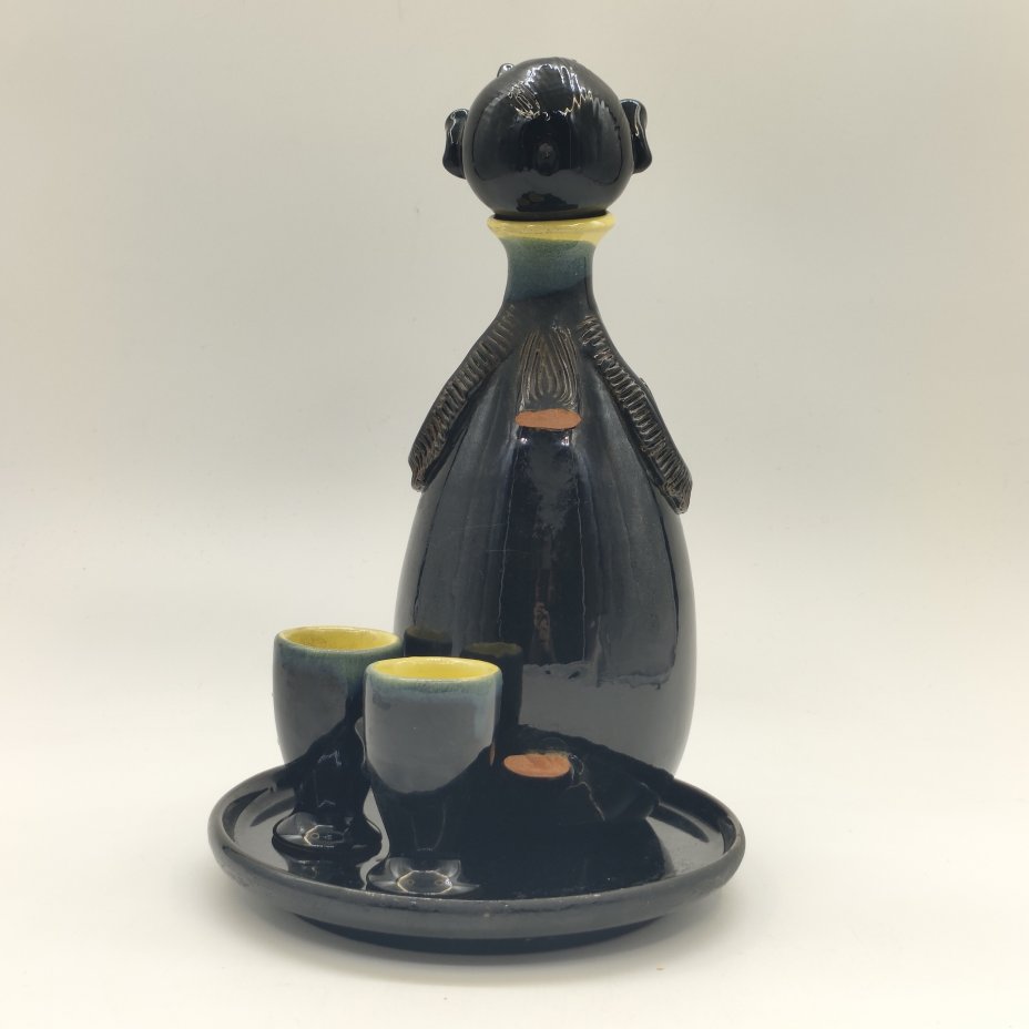 Штоф "Пингвин" с этикеткой "Русский бальзам", скульптор Н.А. Кольцов, фарфор, кобальт, роспись, Ленинградский фарфоровый завод (ЛФЗ), СССР, 1960-1970 гг.