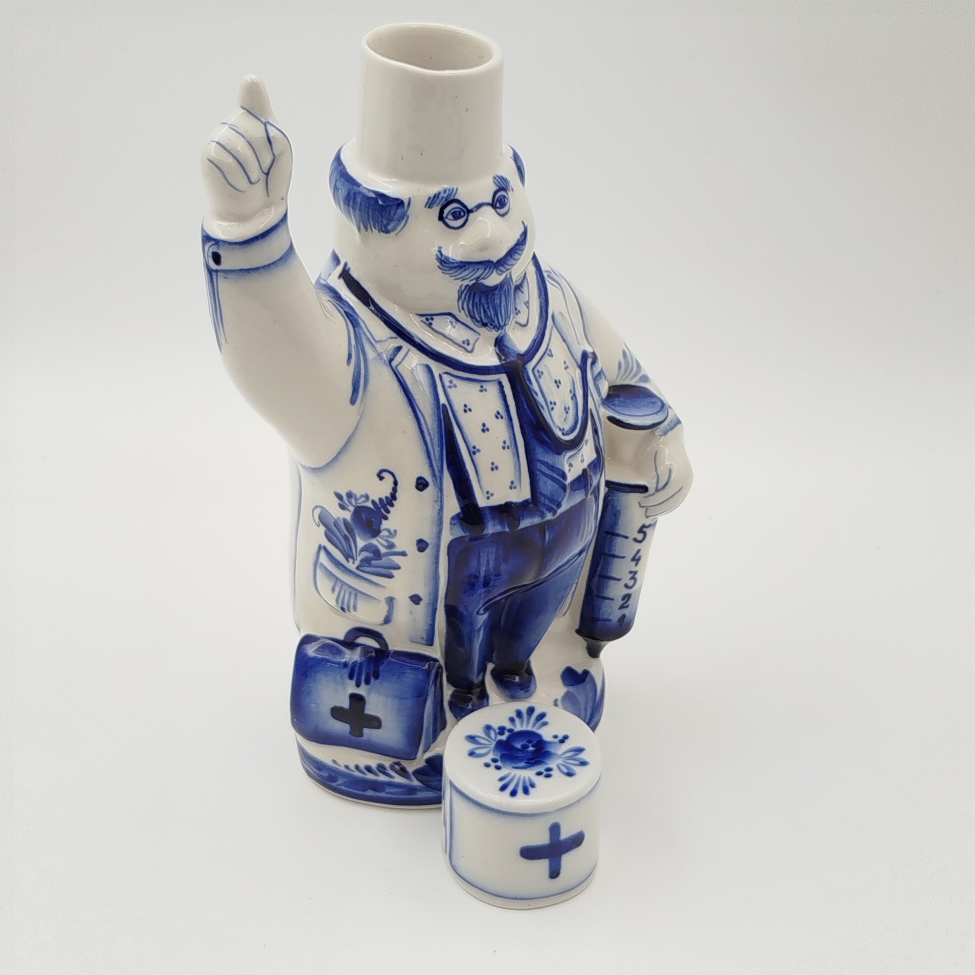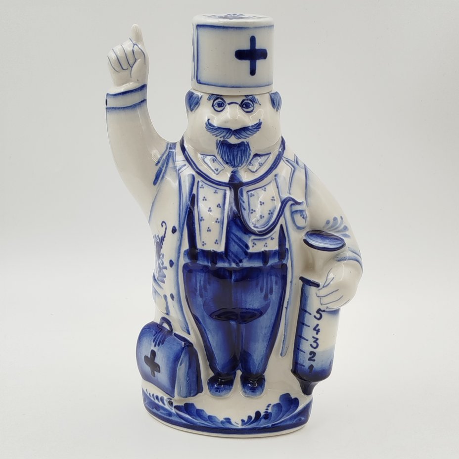 купить Штоф "Доктор", авторы Ольга и Михаил Пулеметовы, Гжель, фарфор, роспись, Россия, 2000-2020 гг.