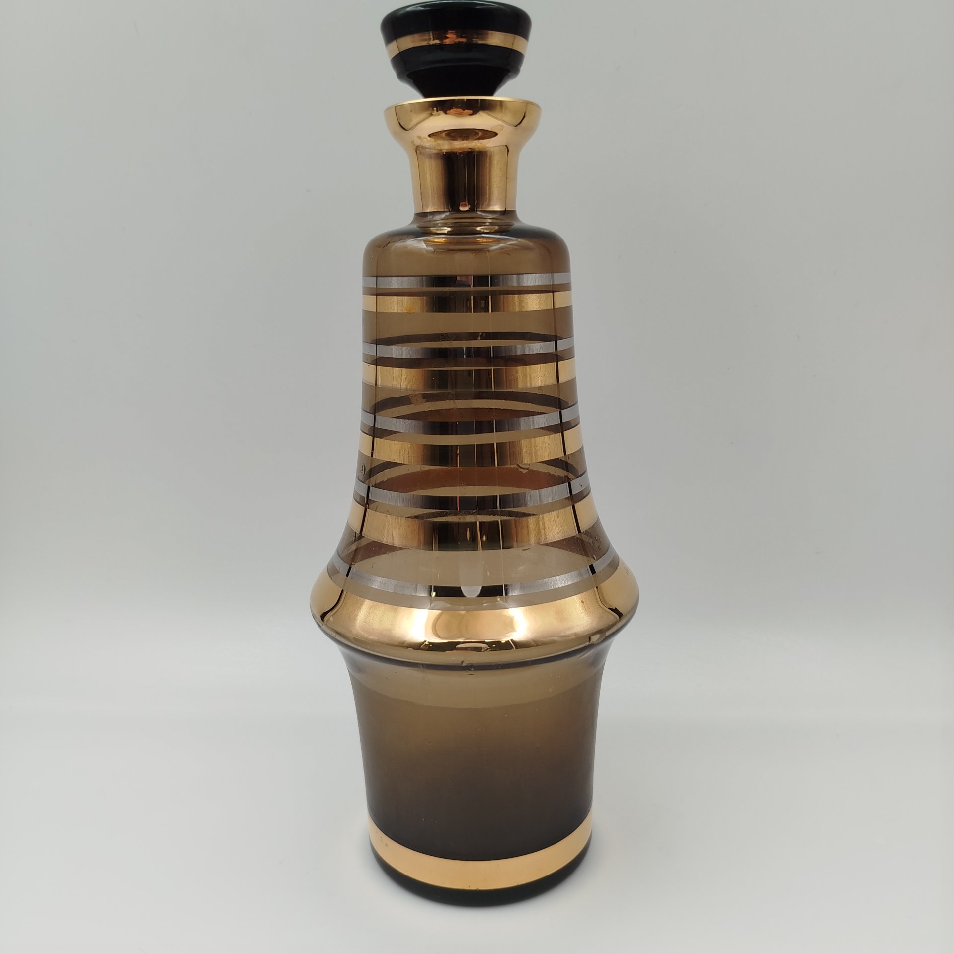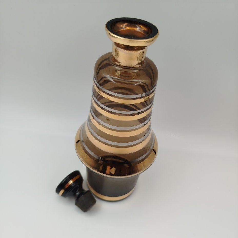 Штоф дымчатого оттенка, декорированный линиями, стекло, золочение, серебрение, Чехословакия, 1970-1990 гг.