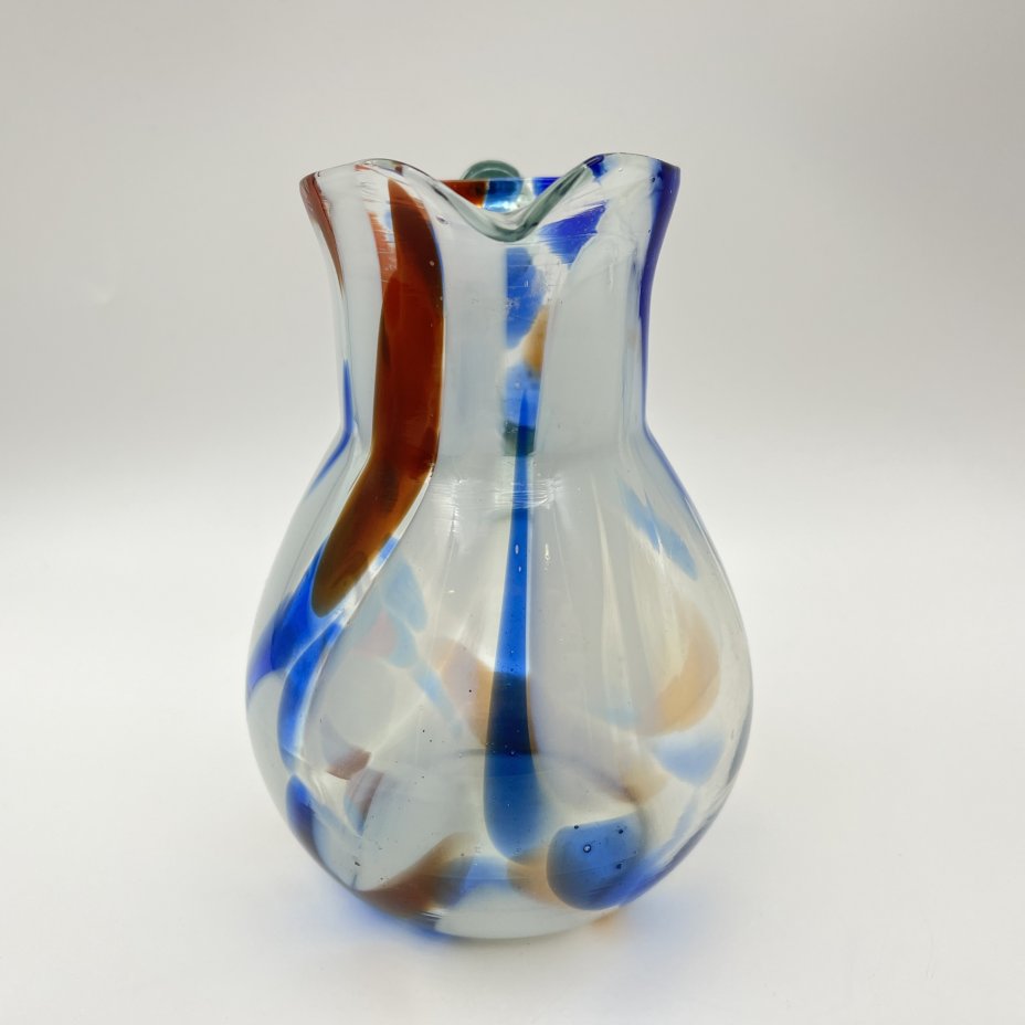 Кувшин с декором виде цветных полос, цветное стекло, гутная технка, СССР, 1970-1980 гг.