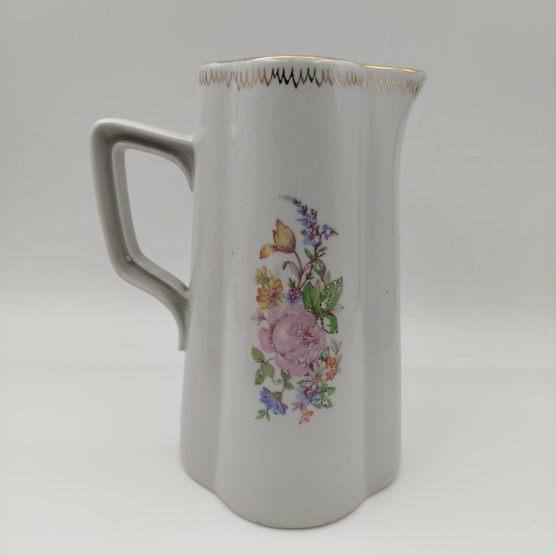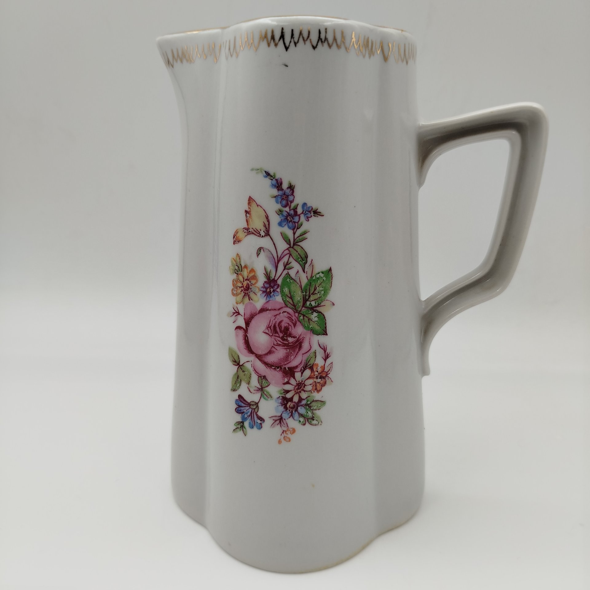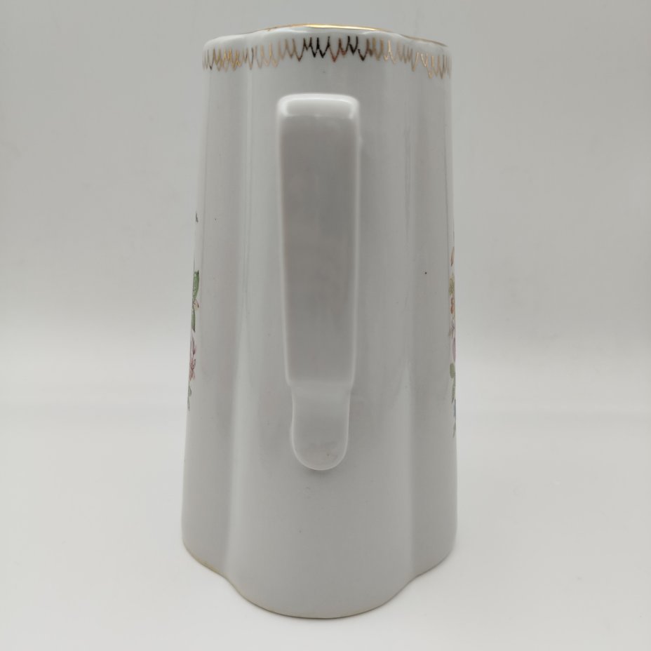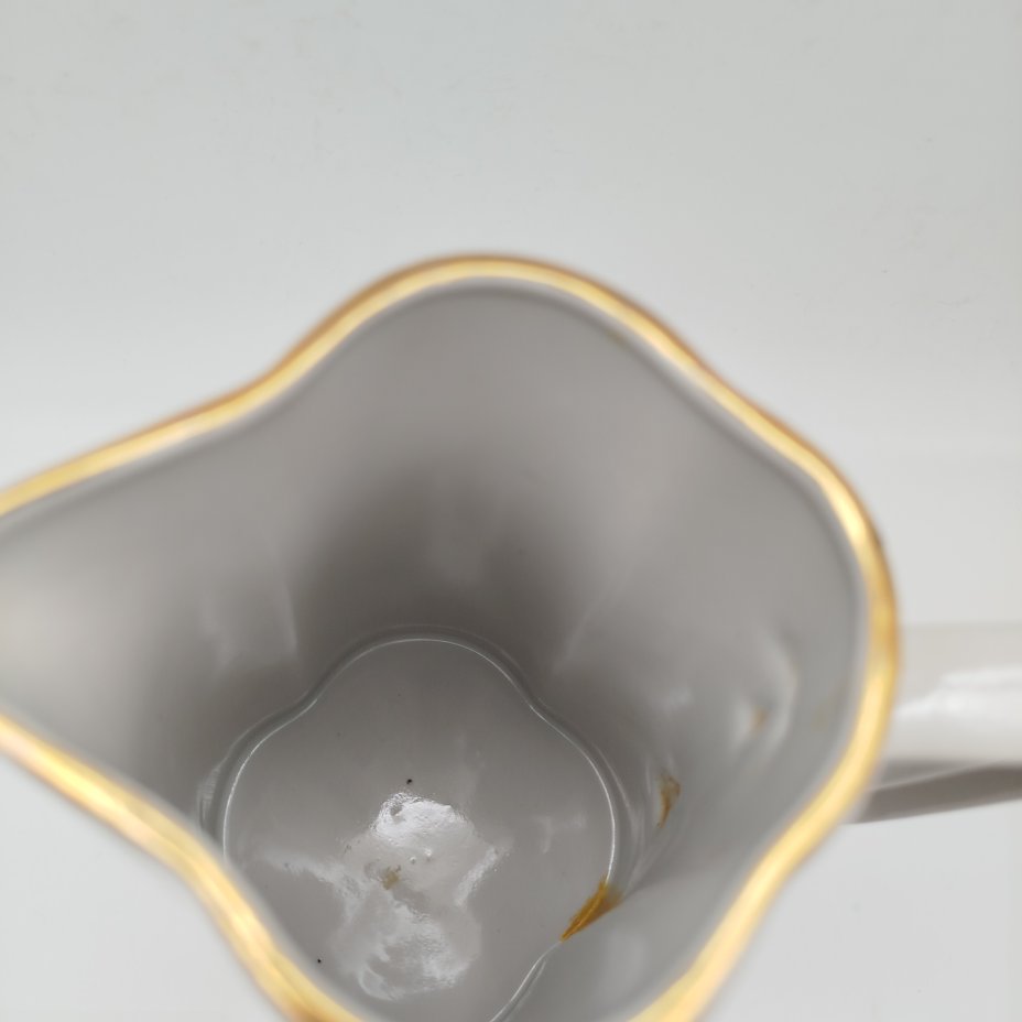 Кувшин лаконичной формы с золотистым орнаментом, фарфор, крытье, золочение, Рижский фарфорово-фаянсовый завод, СССР, 1953-1962 гг.
