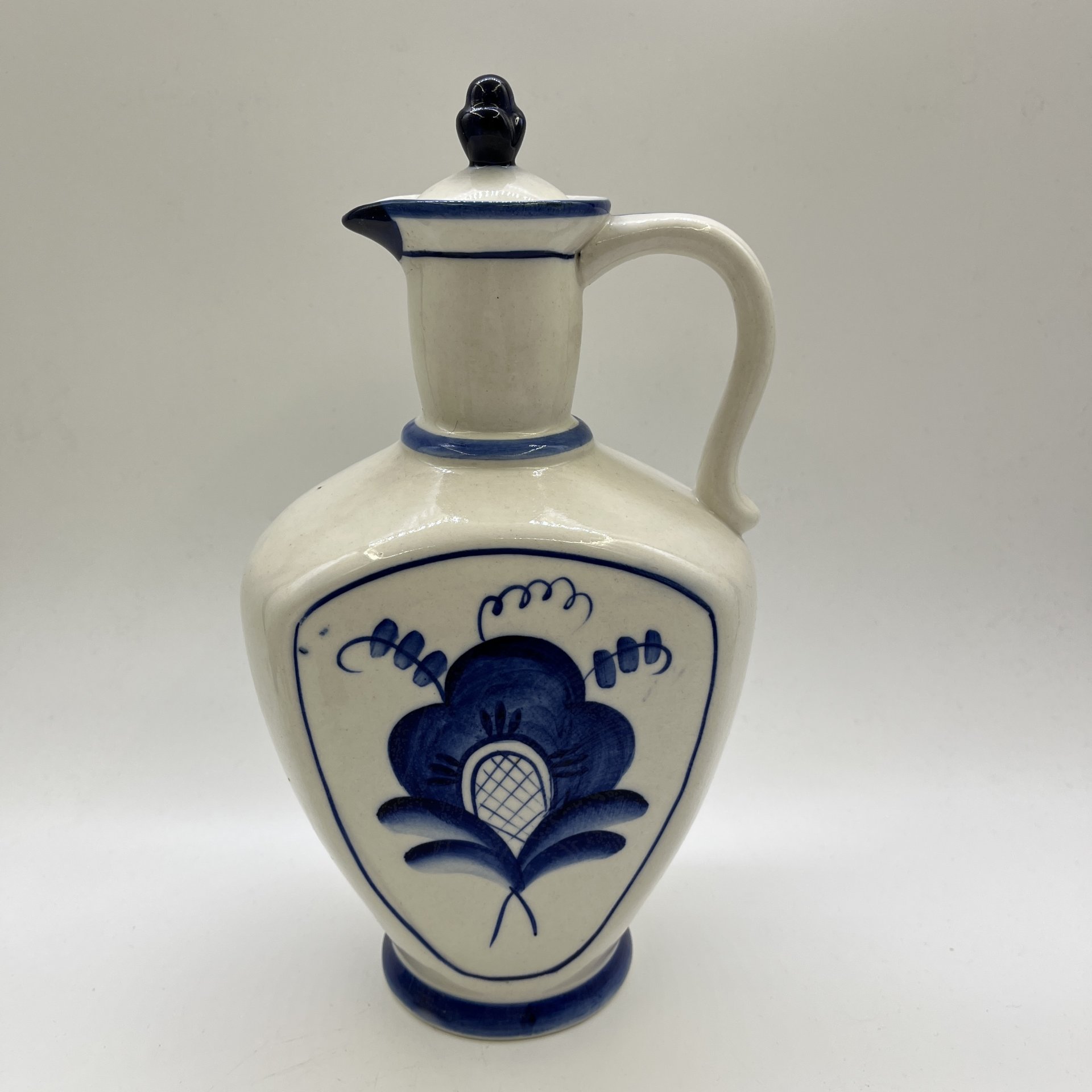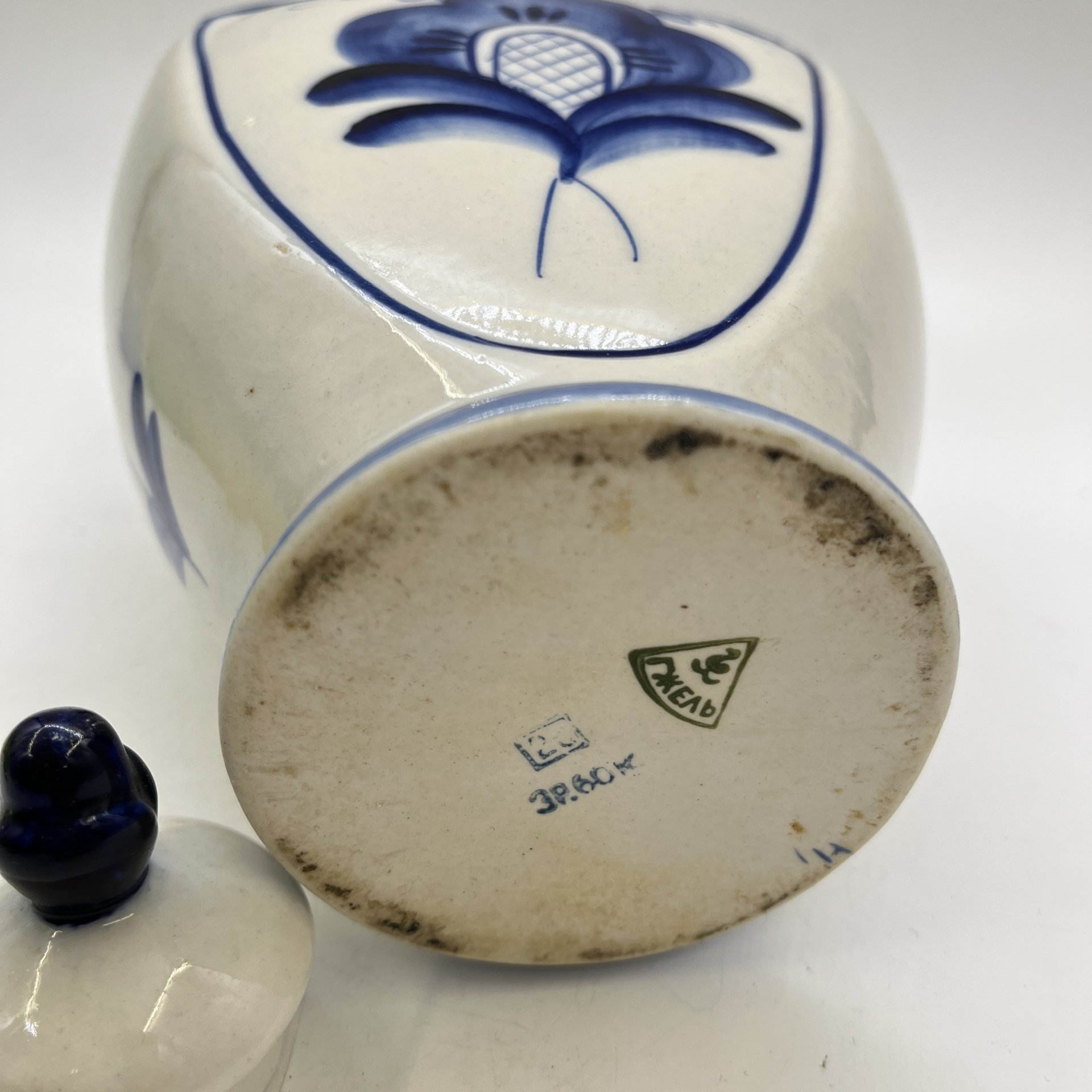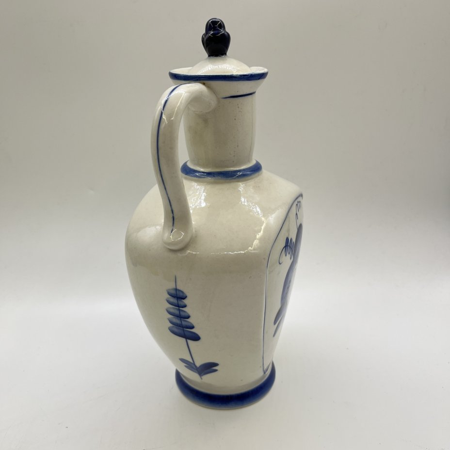 Кувшин с крышкой "Цветок, фарфор, роспись, Объединение «Гжель», СССР, 1972-1985 гг.