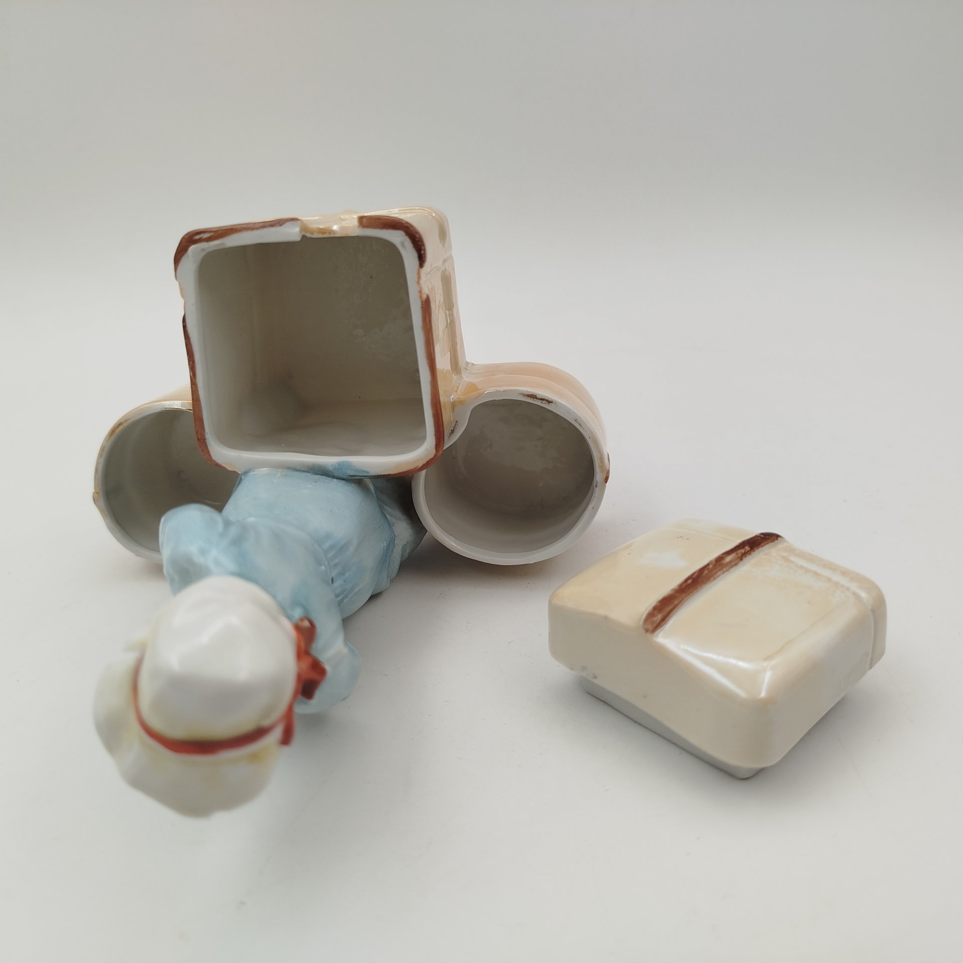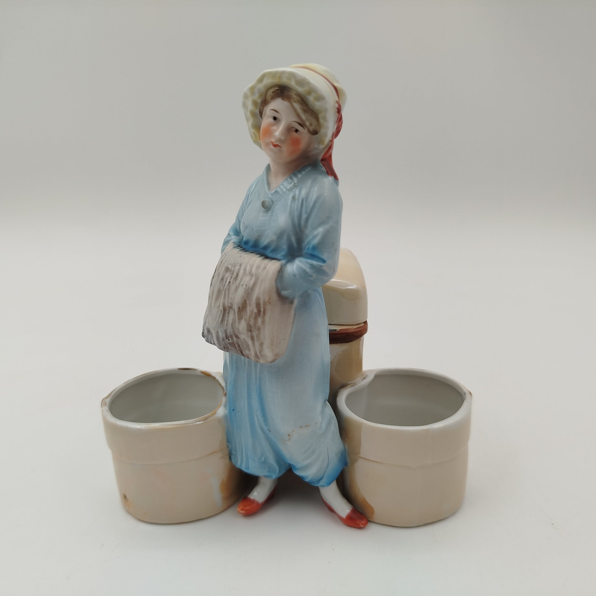 Набор для специй в форме клозета и двух горшков (ложка в комплекте), фарфор, деколь, золочение, Франция, 1970-1990 гг.