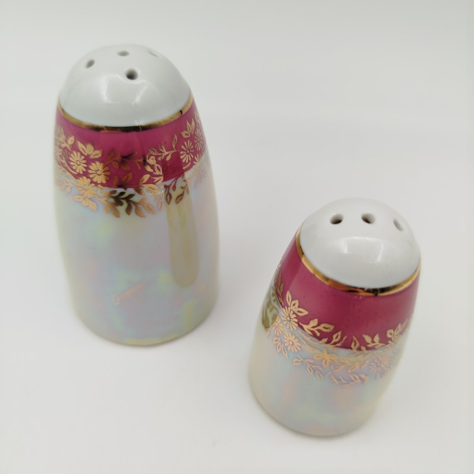 Набор для специй (перечница и солонка) из сервиза "Мадонна", фарфор, крытье, люстр, золочение, Fortuna Eisenberg, ГДР, 1960-1973 гг.