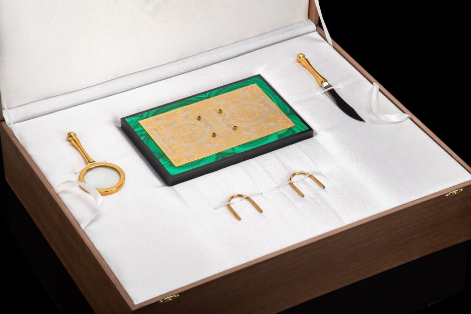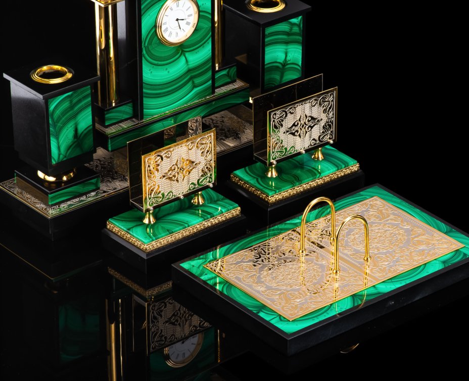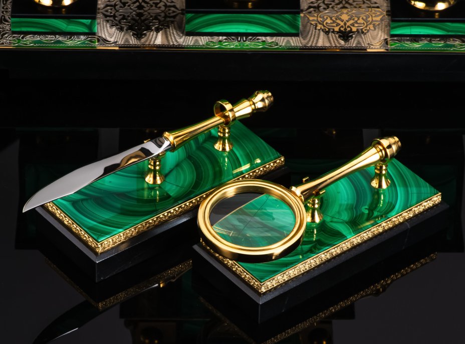 - Материал: Малахит, бронза, долерит, металл, золочение, травление