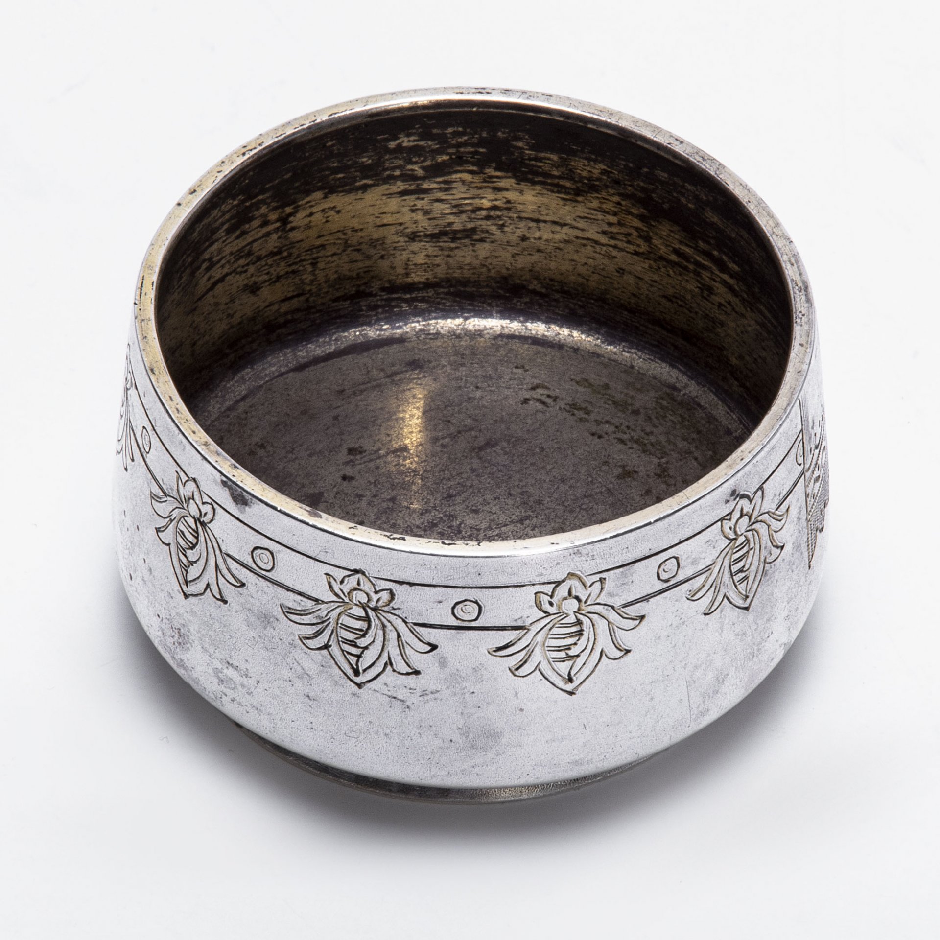 Солонка в русском стиле с декором в виде края рушника, металл, Мастерская Василия Ивановича Андреева, Российская империя, 1908-1917 гг.