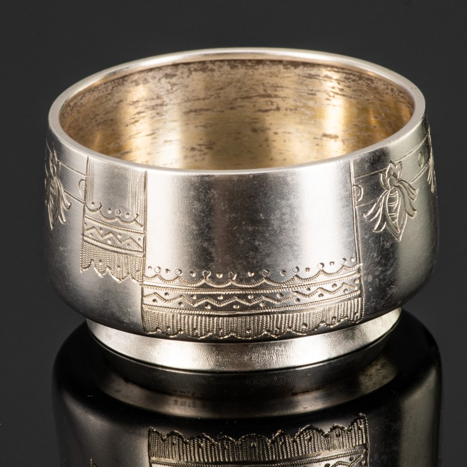 Купить Солонка в русском стиле с декором в виде края рушника, металл, Мастерская Василия Ивановича Андреева, Российская империя, 1908-1917 гг.