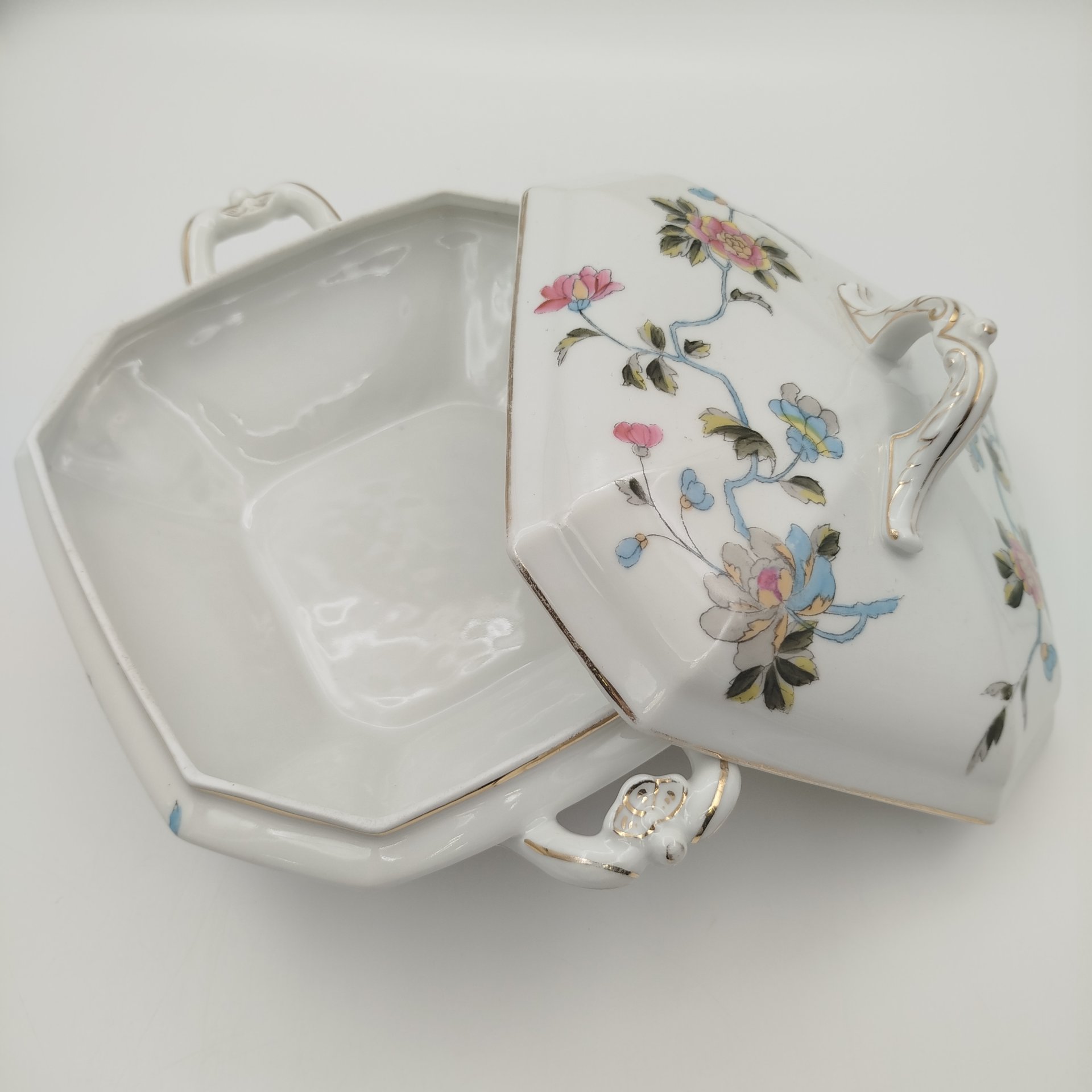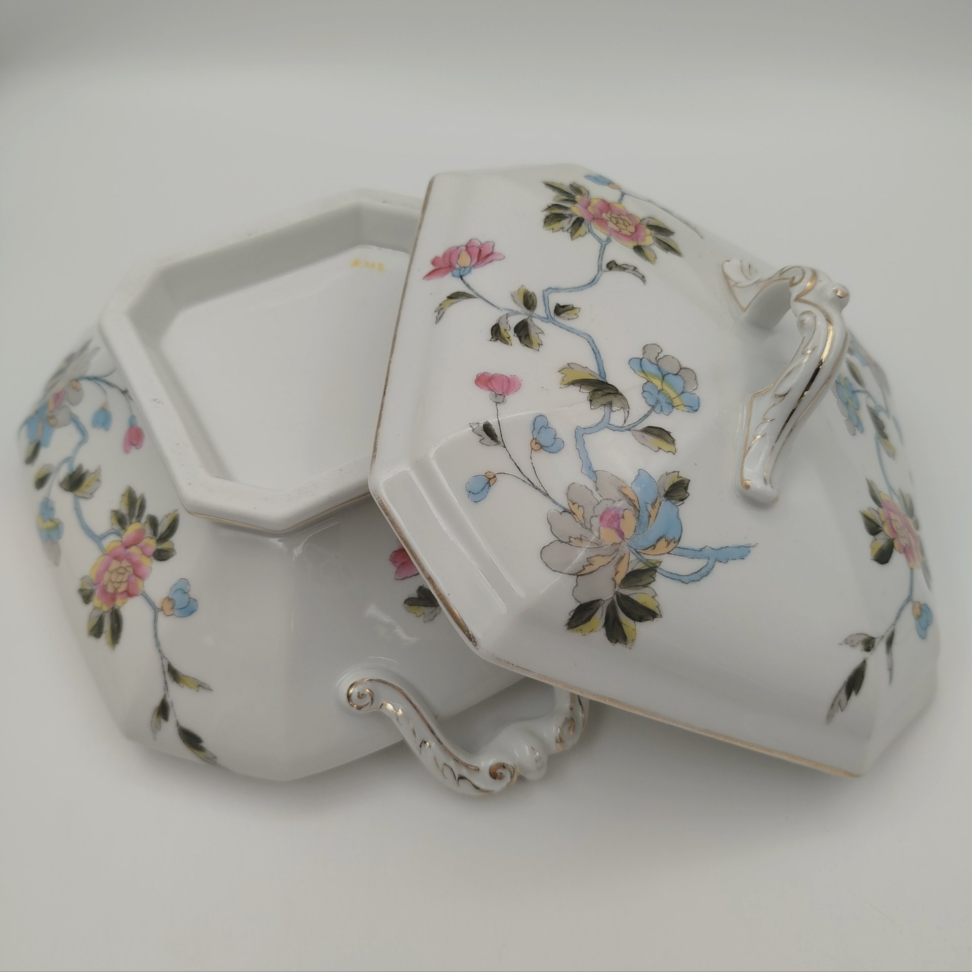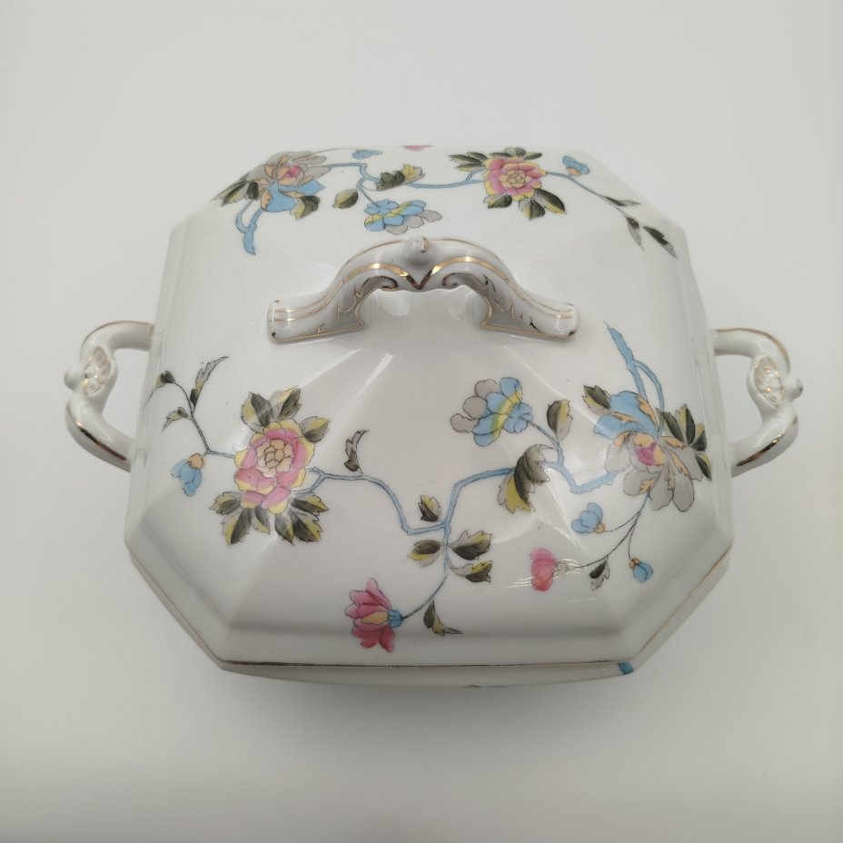 Терина (блюдо) для подачи горячих блюд с цветочным декором, фарфор, роспись, золочение, Европа, 1900-1920 гг.