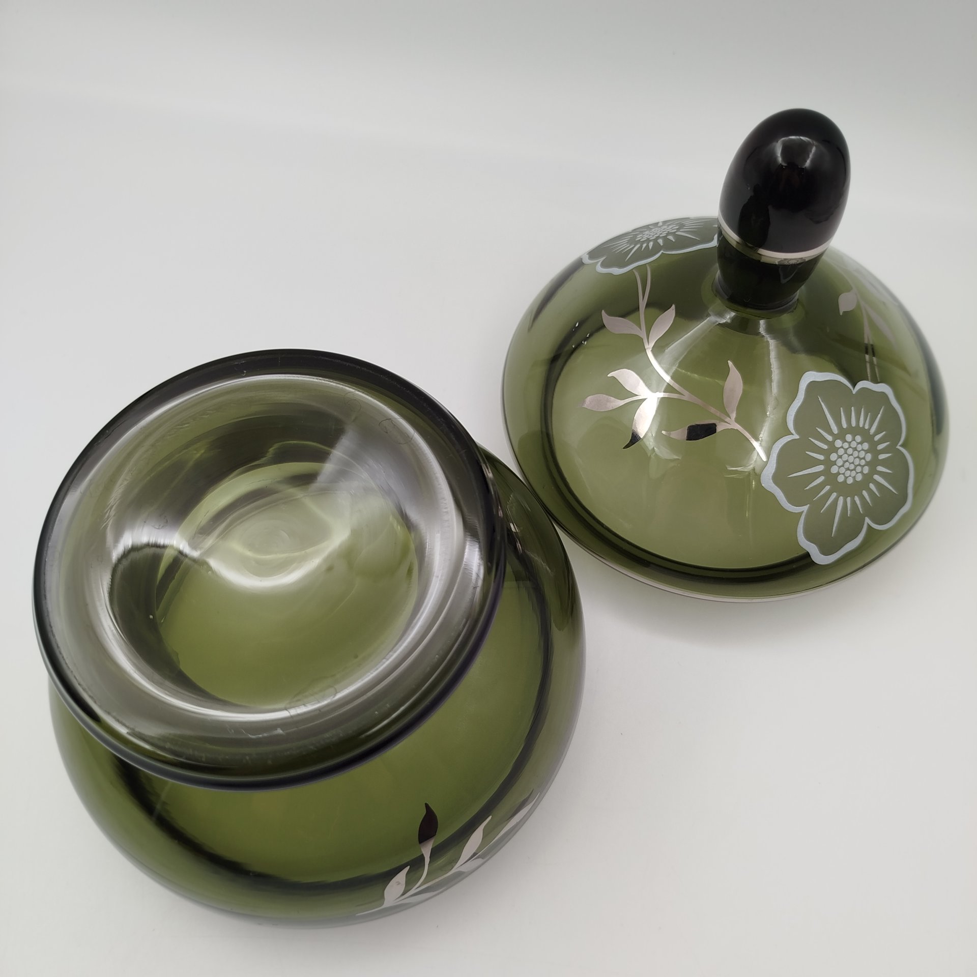 Купить Бонбоньерка для конфет зеленого цвета с растительным декором, стекло, роспись, золочение, Италия, 1970-1980 гг.