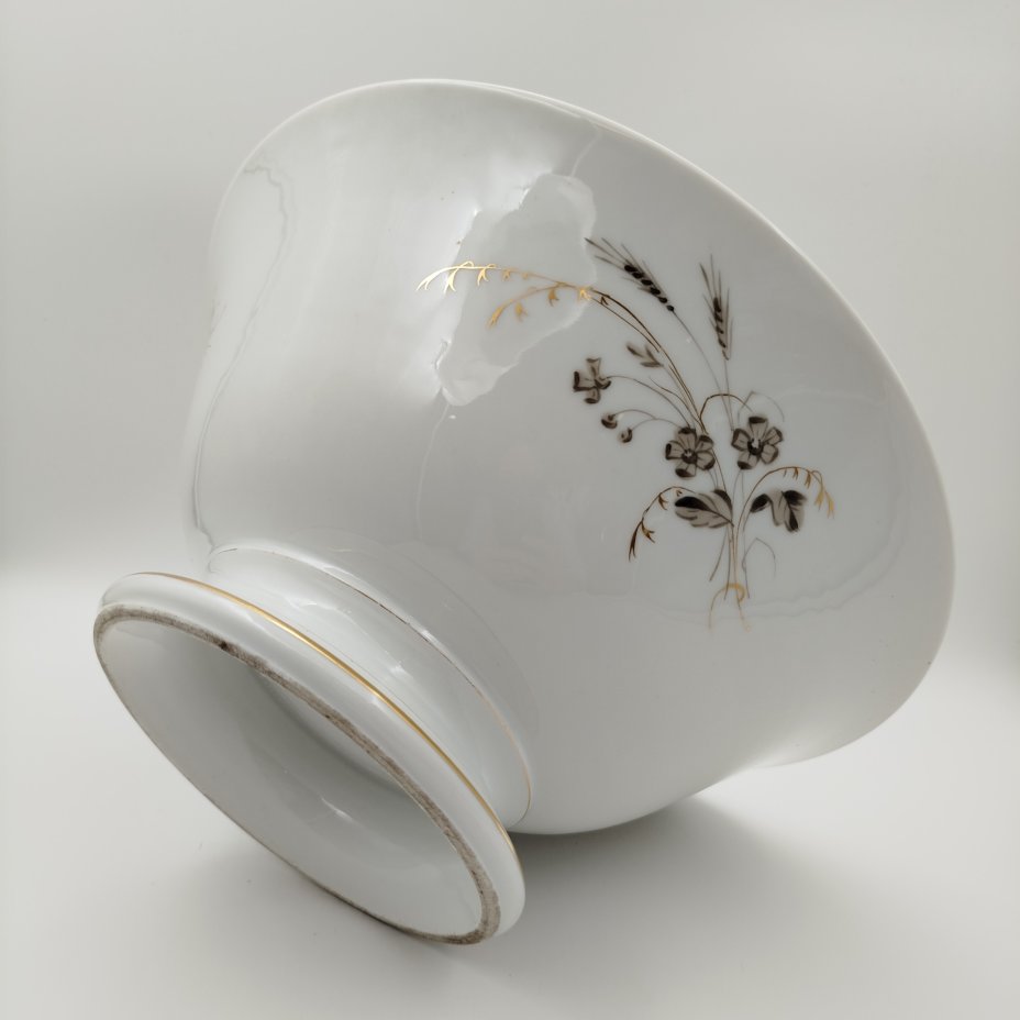Фруктовница «ГУТМО» (Главное управление торговли Министерства обороны), украшенная золотой каймой, фарфор, золочение, Фарфоровый завод «Пролетарий» (Бронница, Мста), СССР, 1958-1967 гг.