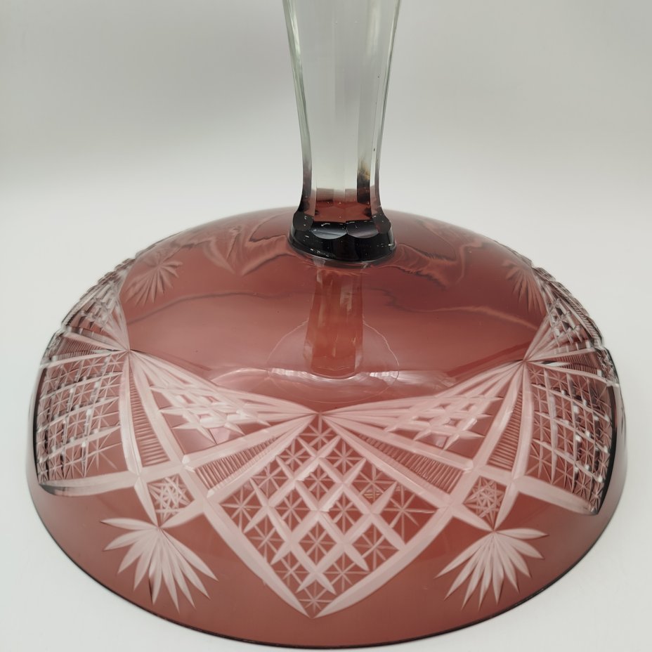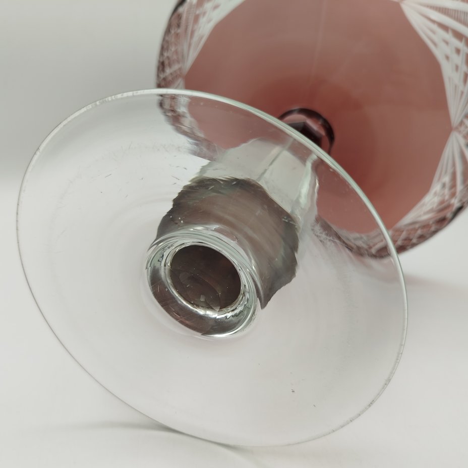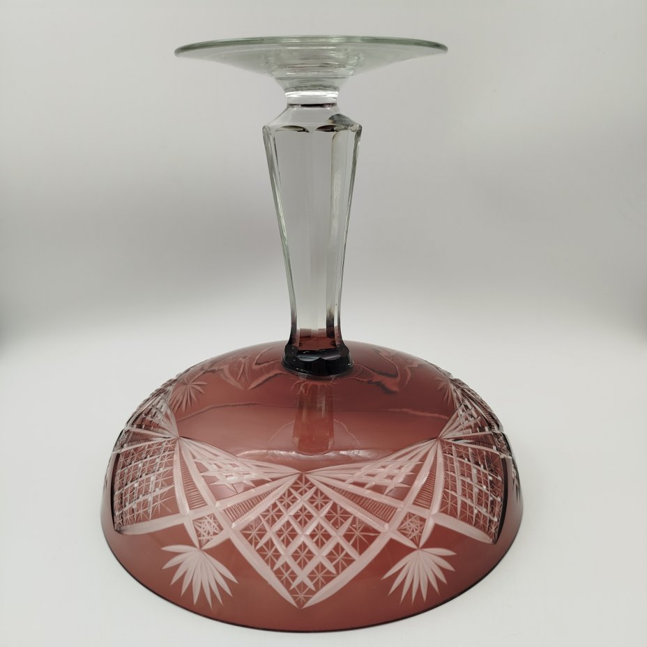 Ваза (конфетница) марганцевого оттенка, выполненная в технике алмазной грани, стекло, нацвет, алмазная грань, СССР, 1960-1980 гг.