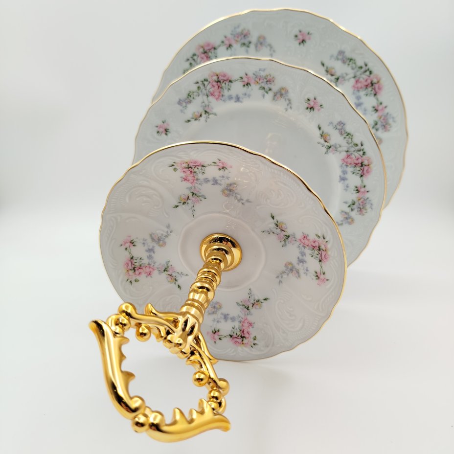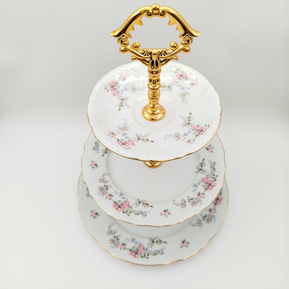 Фруктовница трехуровневая с цветочным рельефным декором, фарфор, деколь, золочение, Bernadotte, Чехия, 1993-2010 гг.