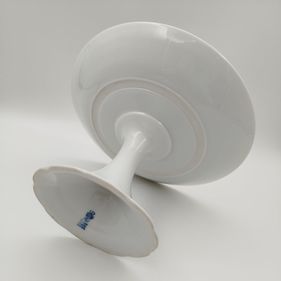 Фруктовница (конфетница) на высокой ножке, украшенная цветочным декором, фарфор, роспись, Гжельский фарфоровый завод, Россия, 1991-2010 гг.