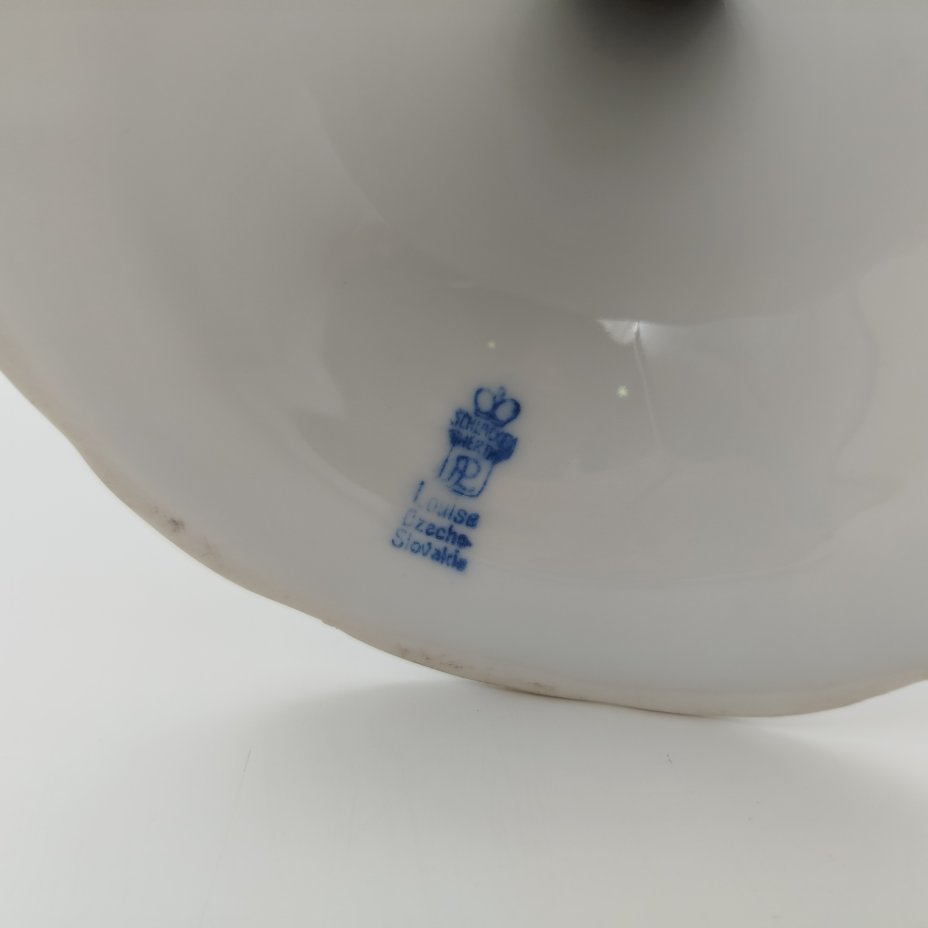 Фруктовница (конфетница) на ножке, украшенная цветочным декором, Schlackenwerth, фарфор, деколь, золочение, Чехословакия, 1920-1939 гг.
