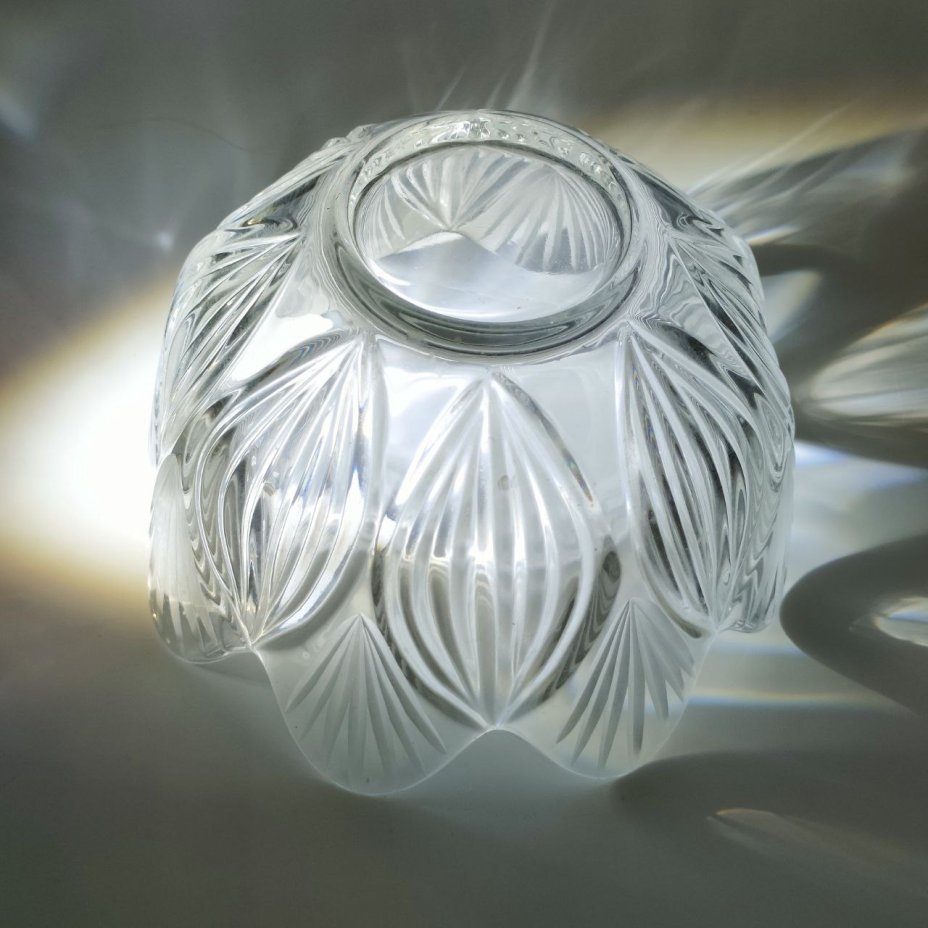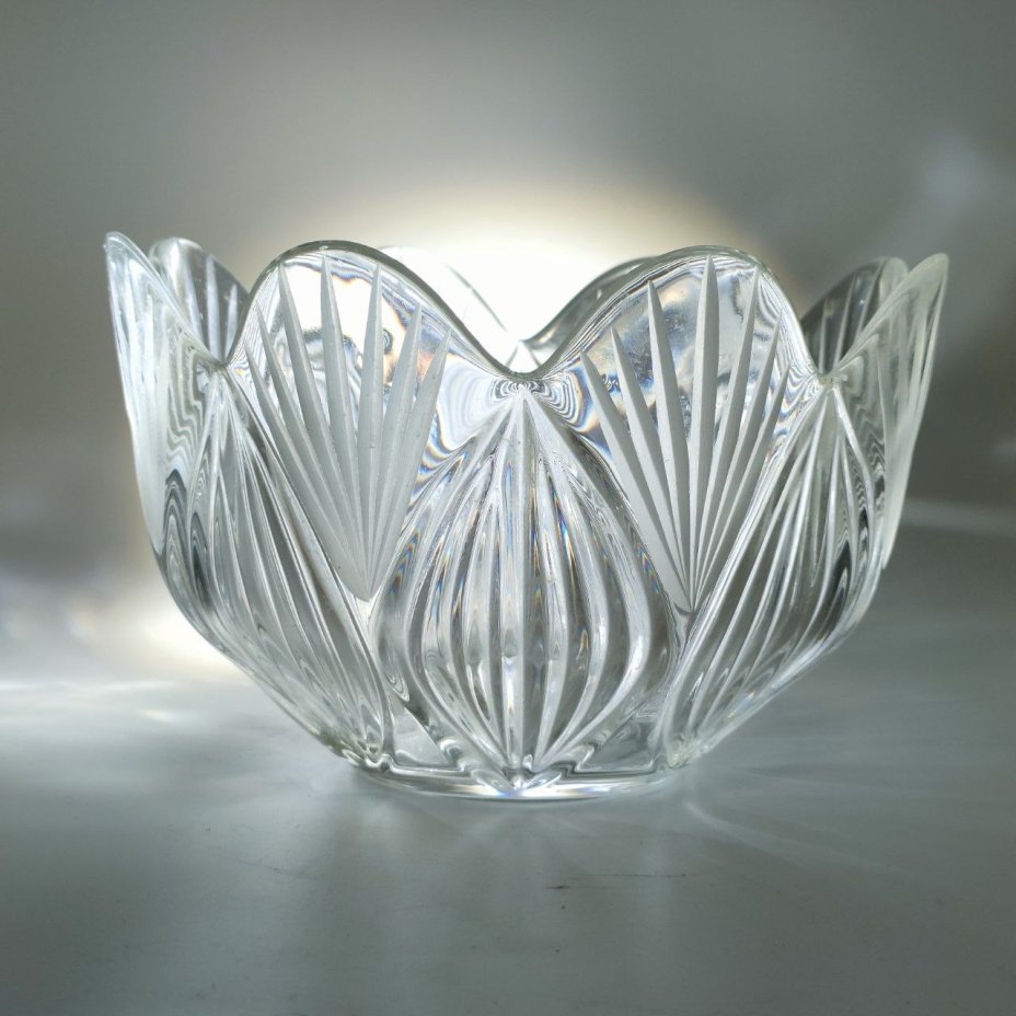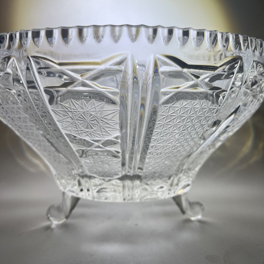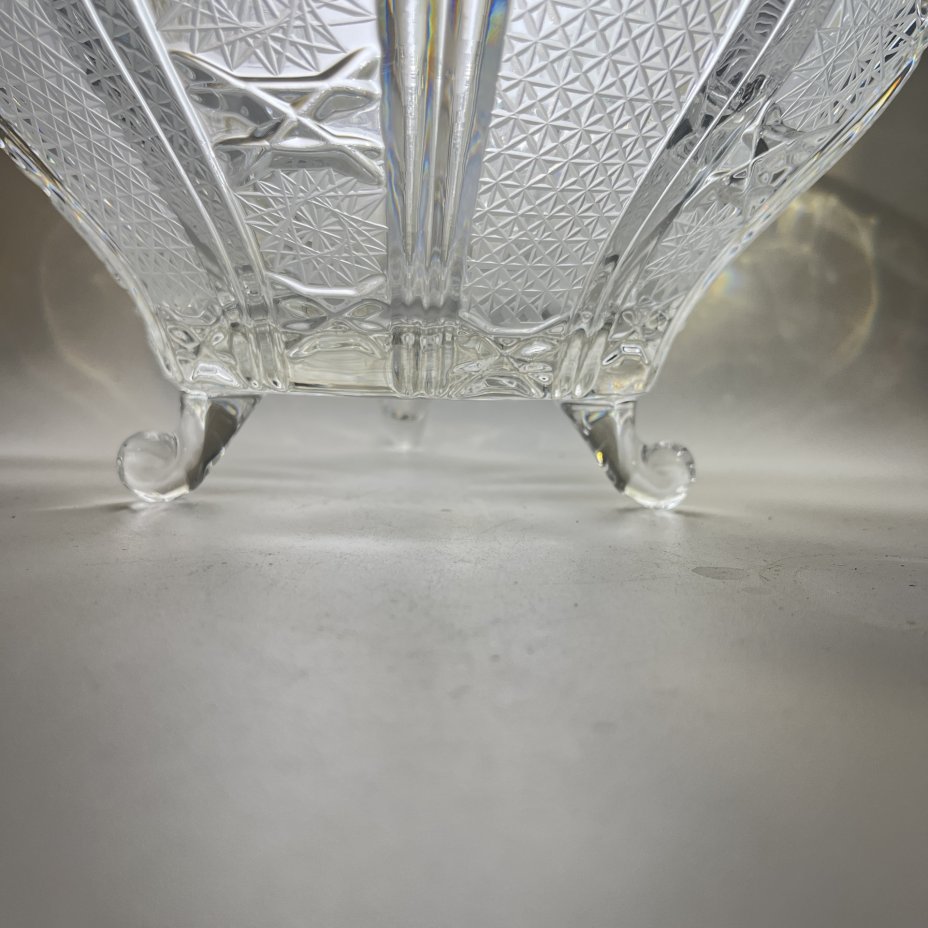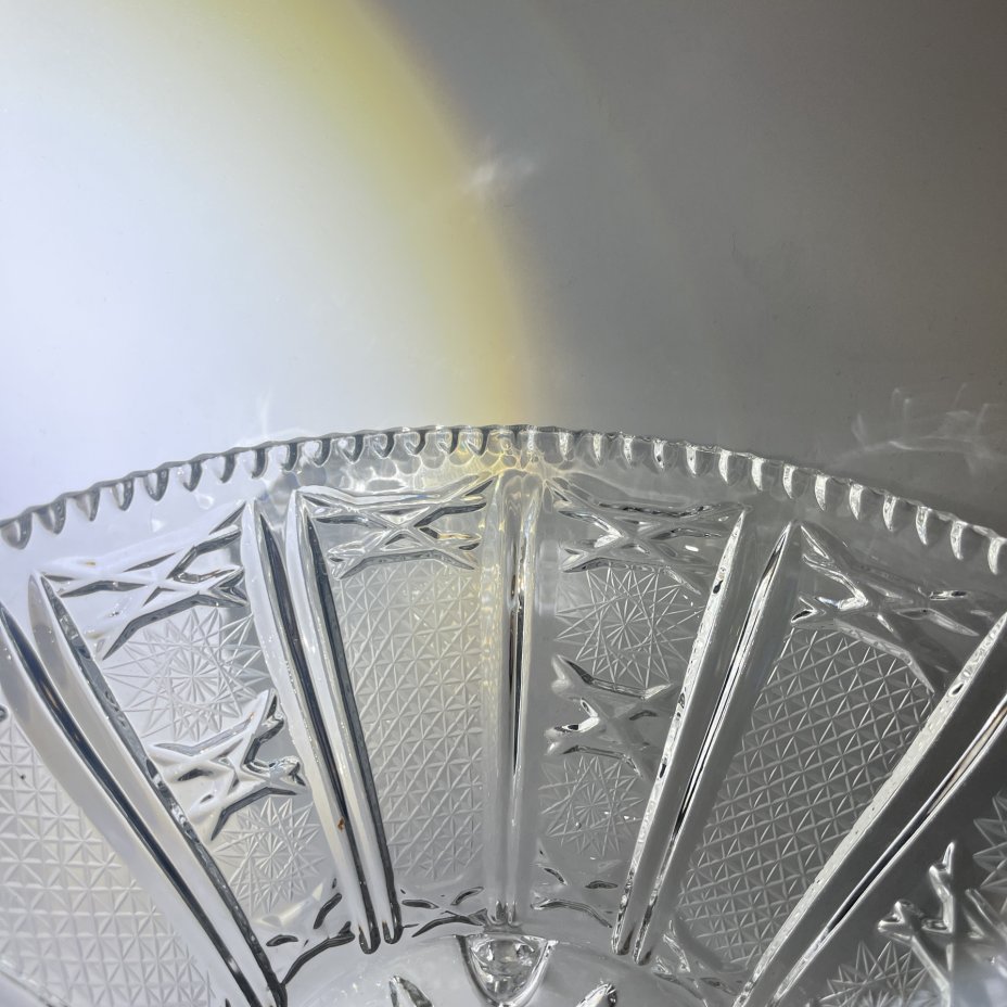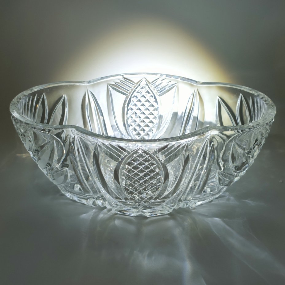 Фруктовница с резным геометрическим декором, хрусталь, алмазная грань, СССР, 1970-1990 гг.