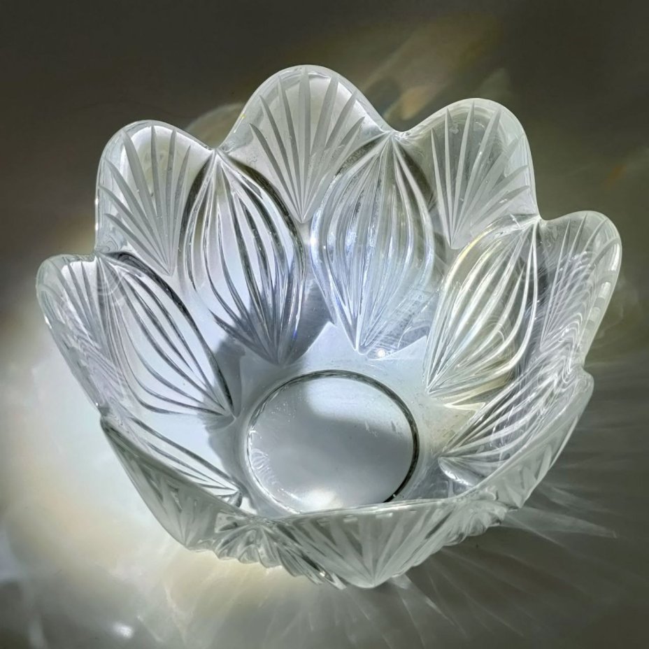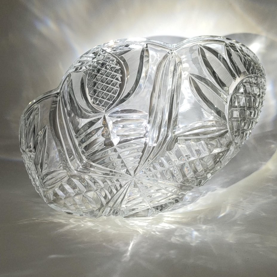 Фруктовница (конфетница) с растительным декором, хрусталь, алмазная грань, СССР, 1970-1990 гг.