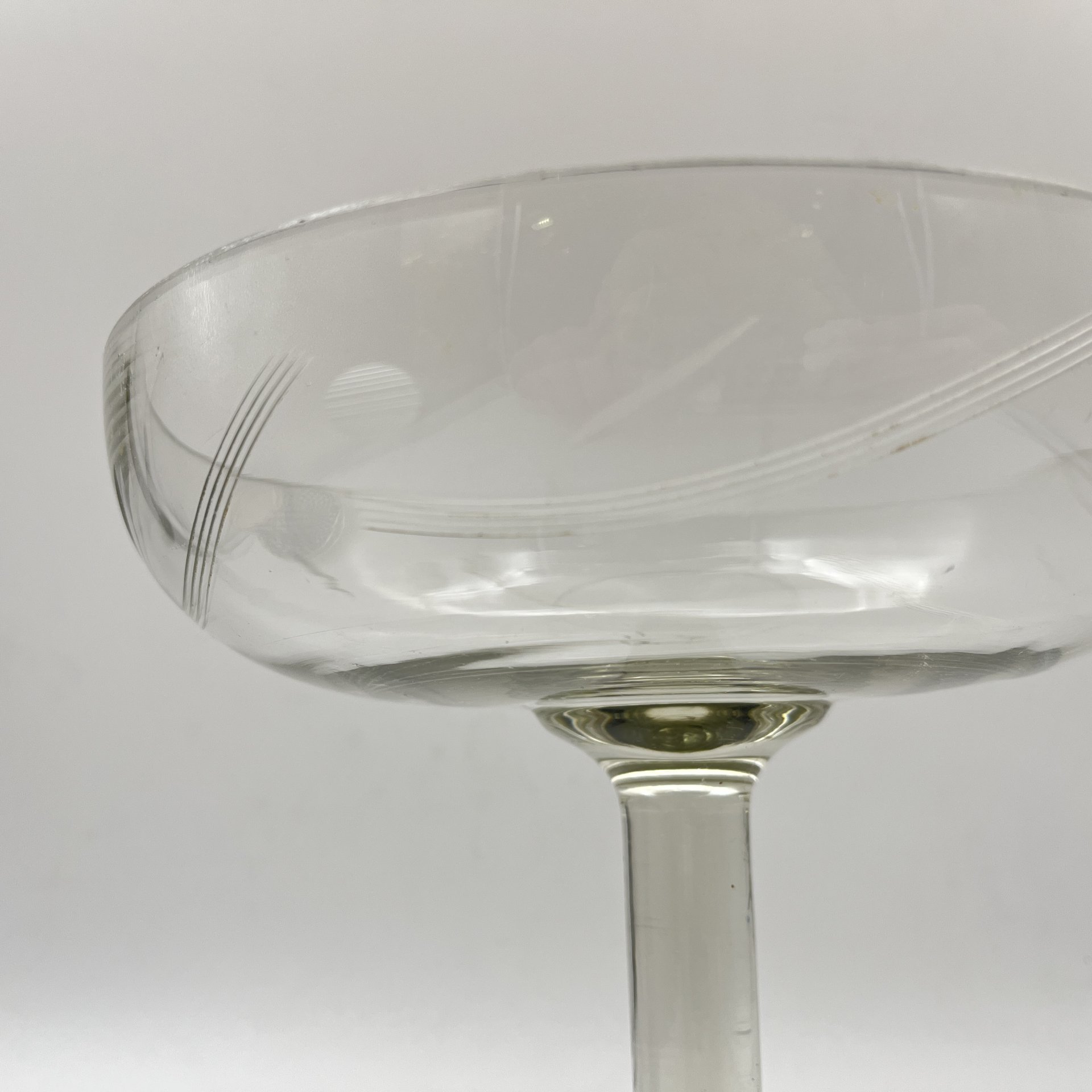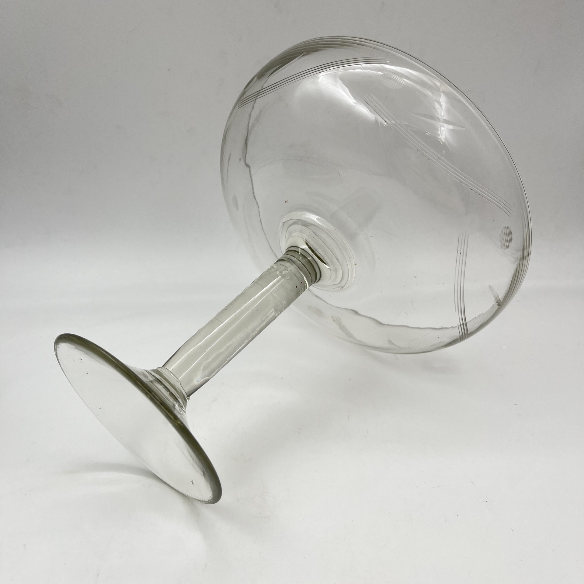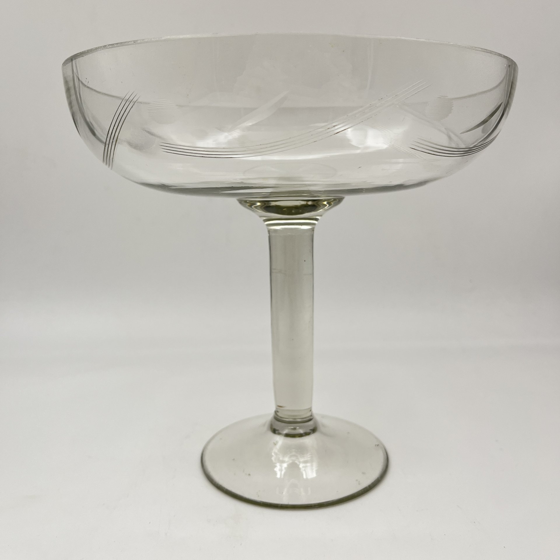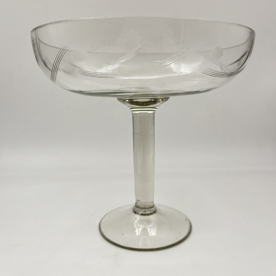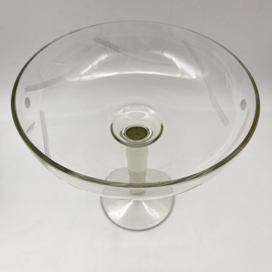Фруктовница (конфетница) с геометрическим декором, стекло, гравировка, СССР, 1960-1990 гг.