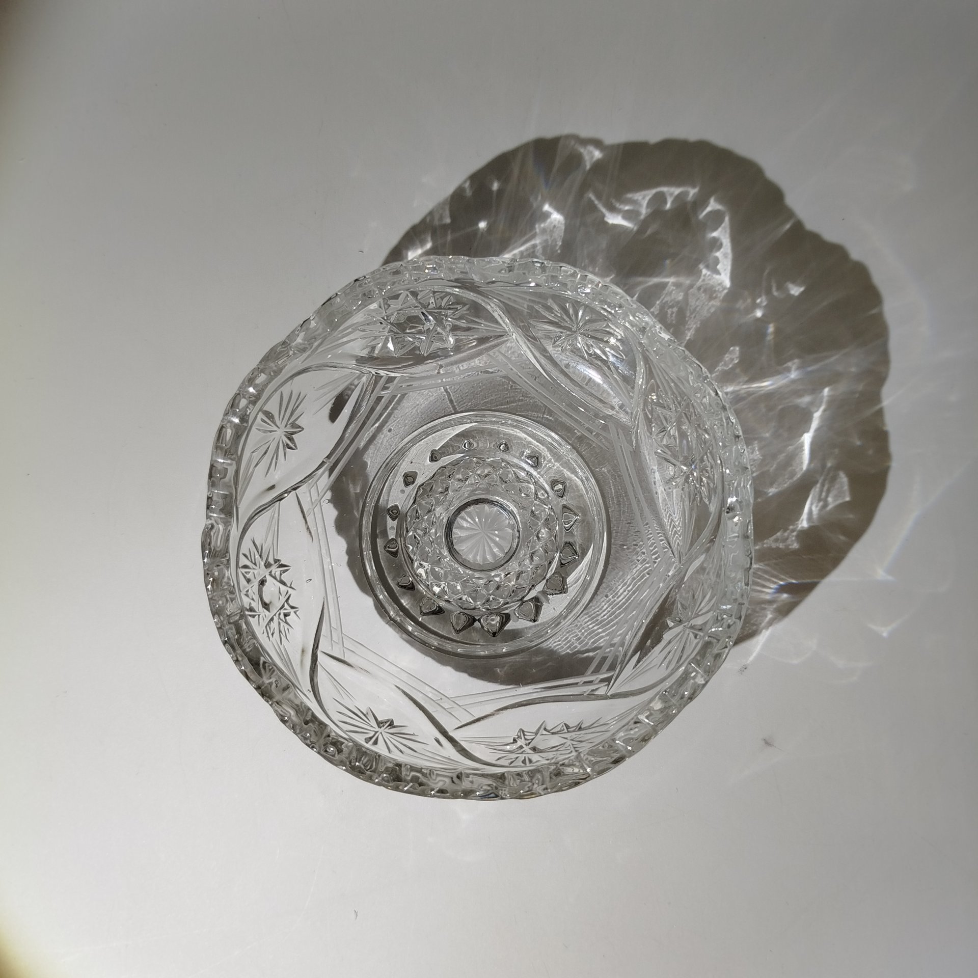 купить Конфетница на ножке с резным декором, хрусталь, гранение, СССР, 1970-1980 гг.