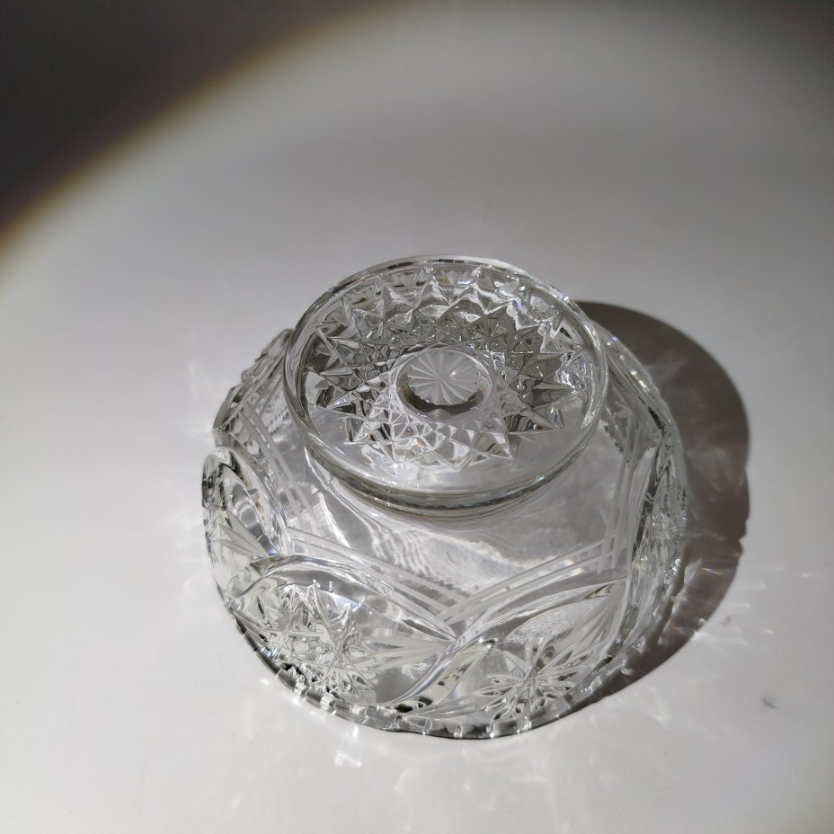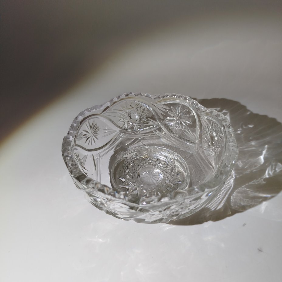 Конфетница на ножке с резным декором, хрусталь, гранение, СССР, 1970-1980 гг.